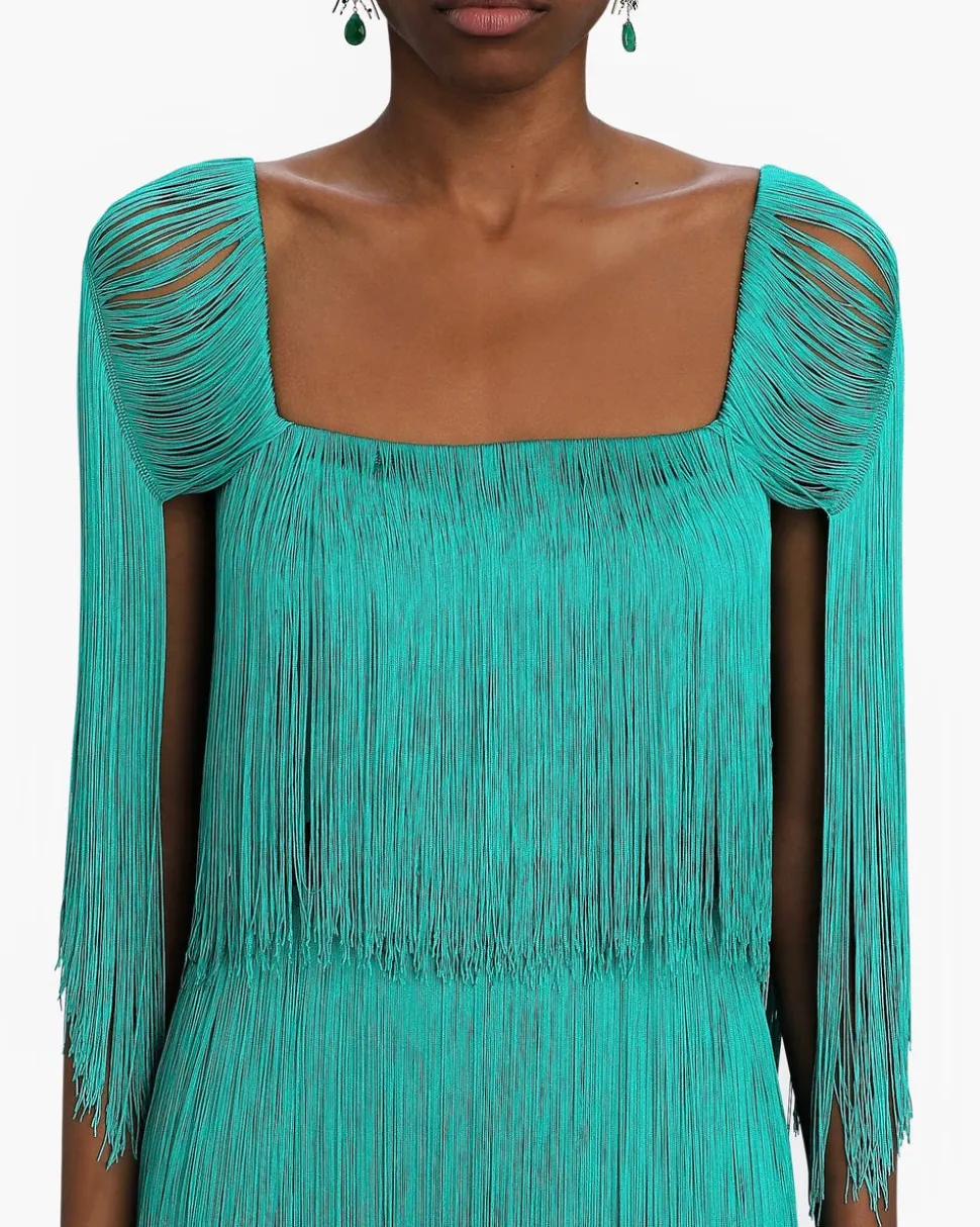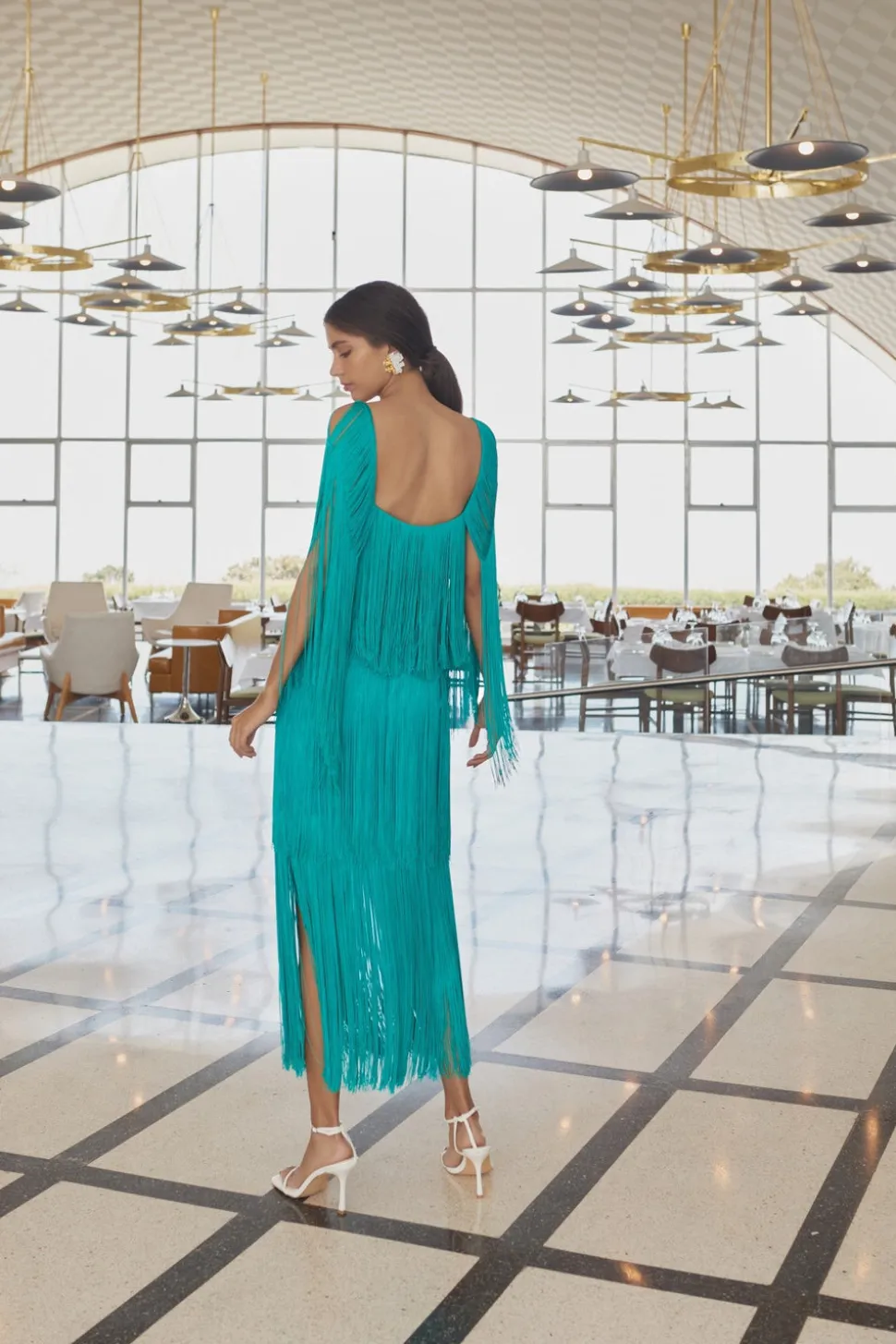Founded by Daniela Panaro, No Pise La Grama, which translates to “don’t step on the grass,” is a Venezuelan fashion brand known for its feminine, timeless designs. As the name suggests, there’s a strong connection to nature through the elevated yet laid-back aesthetic inspired by travel and the art of traditional craftsmanship. With its chic fringe detailing and striking teal hue, the Delta Top brings movement and texture to a timeless silhouette. Effortlessly elegant, it’s an ideal choice for both daytime celebrations and evening soirées.