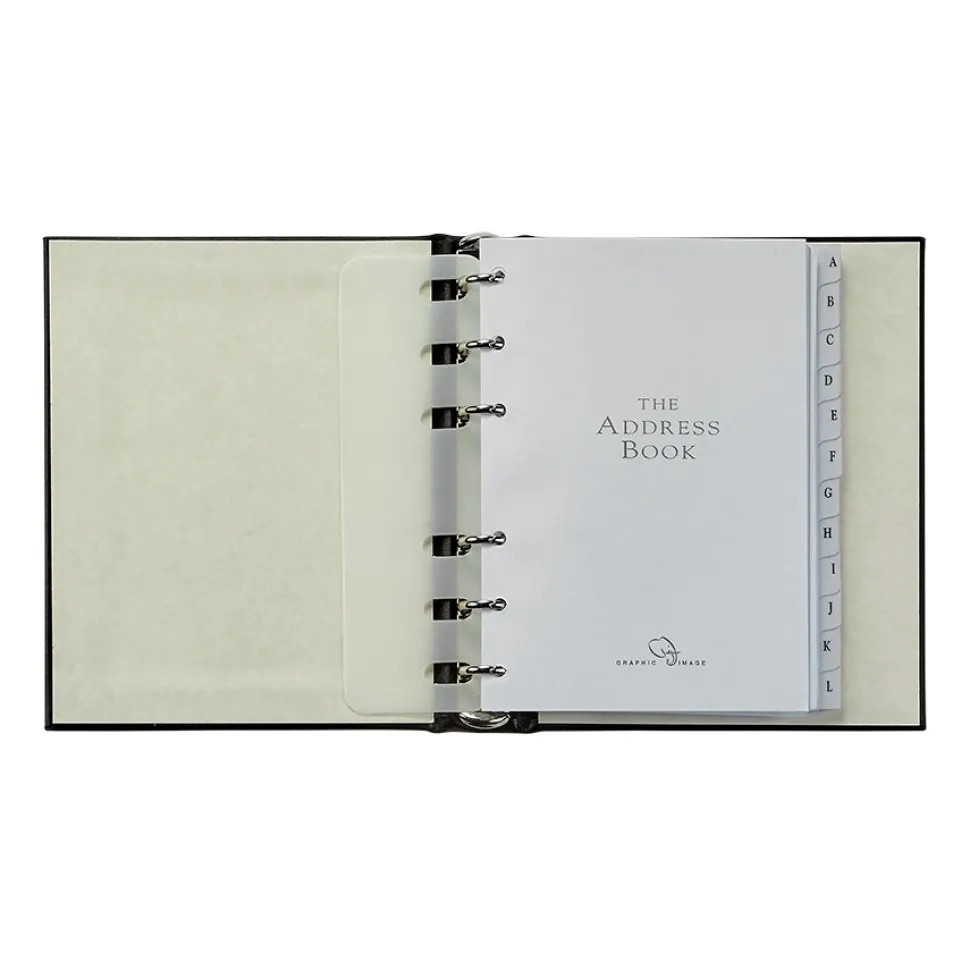 Founded in 1969, Graphic Image’s notebooks and accessories are united by the finest writing text paper, meticulously crafted smyth-sewn binding, and clean design. Working with tanneries in Italy and France, and embracing at once the unconventional and the traditional these are products that offer profound quality, functionality, and unyielding style. The Desk Address Book in Traditional Leather has space for 1500 addresses and is packed with helpful information. Ideal for home or office, it includes A to Z tabs and full-color maps of U.S. and major international cities. Special features include a birthday and anniversary record and a perpetual calendar. The definition of elegant, yet practical.