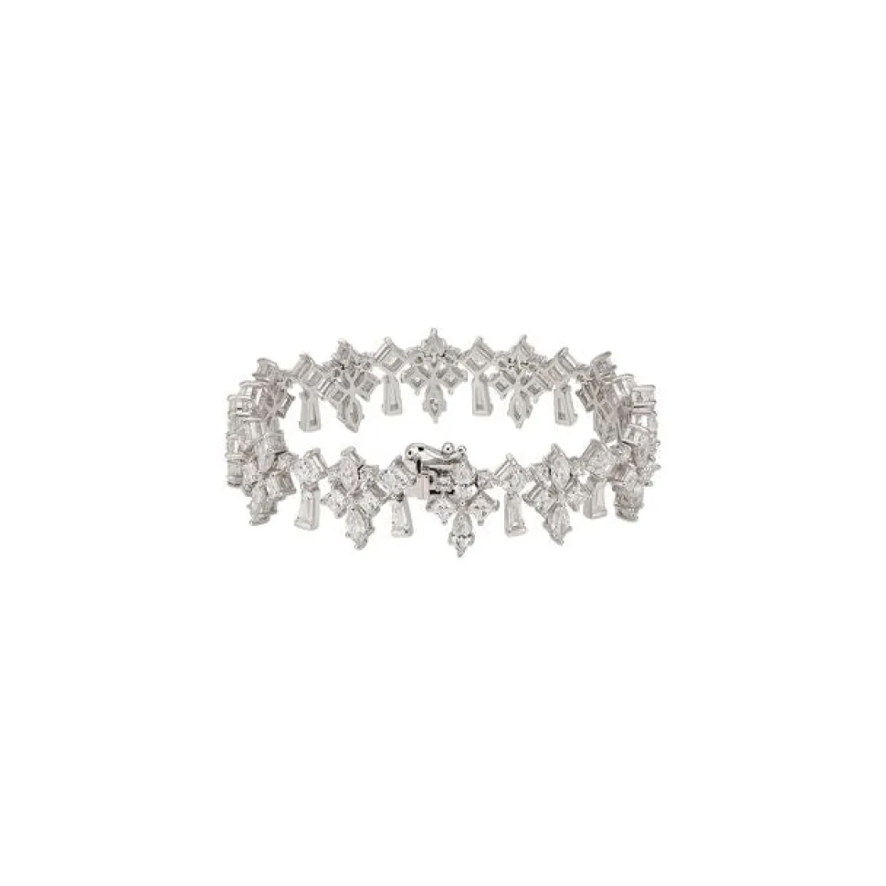 Metals: 18K white gold and rhodium vermeil. Simulated gemstones: White diamonds (carats): 72.9. Hidden push-lock with safety clasp closure. Handcrafted in the United Kingdom.