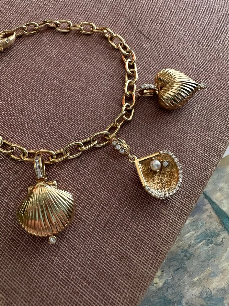 Inspired by her mother, who made golden jewelry from shells found near their home in Southern California, Renna Brown-Taher creates jewels of exquisite quality from the natural world, with minimal impact upon it. A playful nod to the sea, the Diamond Lobster Clasp Handmade Link Charm Bracelet is designed with individually crafted gold links and finished with Renna’s patented lobster-shaped clasp. Equal parts chic and whimsical, it’s ideal worn solo or as the foundation of a personalized charm collection.