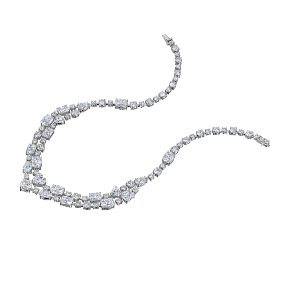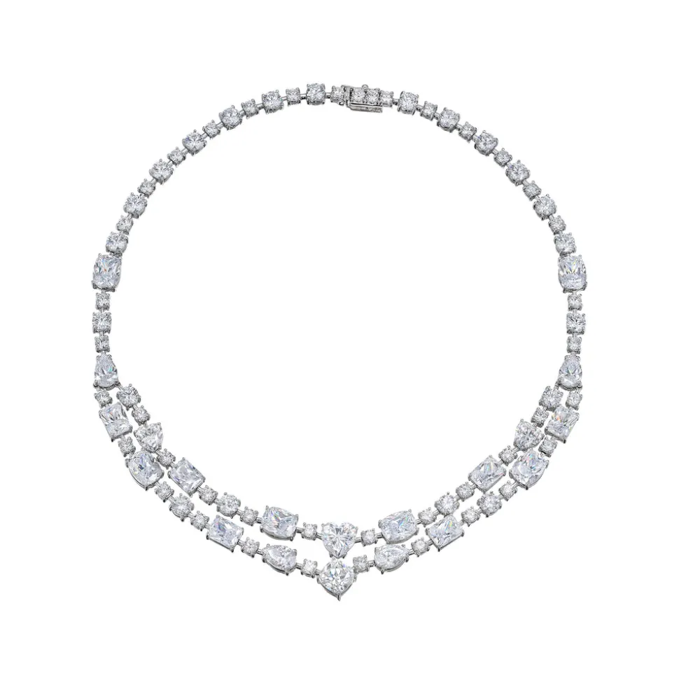 London-based Anabela Chan’s background in architecture and luxury fashion led to the first fine jewelry line to champion laboratory-grown gemstones. Today, its artisanal craftsmanship and sustainable innovations have found a place in the collections of royals, Rihanna, Taylor Swift, and sophisticated women worldwide. This sparkling double strand choker will add shine to your everyday looks. This piece features a total of 68.45 carats of laboratory-grown, simulated white diamonds and a hidden push-lock with safety clasp closure.
