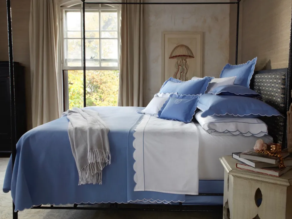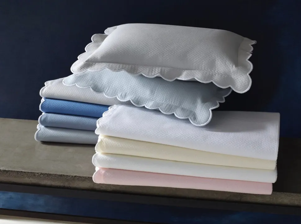 For nearly 100 years and three generations, Matouk has handcrafted luxury linens from the world’s finest materials. Their dedicated artisans in Fall River, Massachusetts are committed to creating the highest quality, most-loved bed, bath, and table linens for your home. Find the ultimate homey texture in the Diamond Pique Collection. Always polished and made in a cotton blend, these are no-fuss linens that require no ironing and are finished with an embroidered scallop trim.