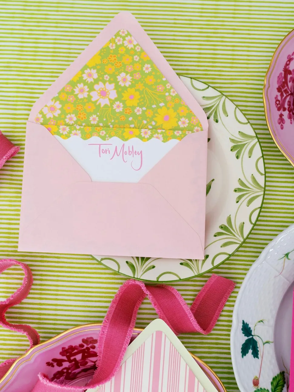 Drawing on a lifelong passion for hospitality and design, founder Mahaley Aguayo transforms everyday moments into extraordinary celebrations through Fête Papier’s curated paper goods and party accessories. With a blend of Southern warmth and modern sophistication, each design invites effortless charm and creates memories destined to be cherished. The Ditsy Floral Stationery Set features a timeless floral pattern and Fête Papier’s signature handwritten style. Personalized with a name or initials, it’s a cheerful and thoughtful way to elevate everyday correspondence.