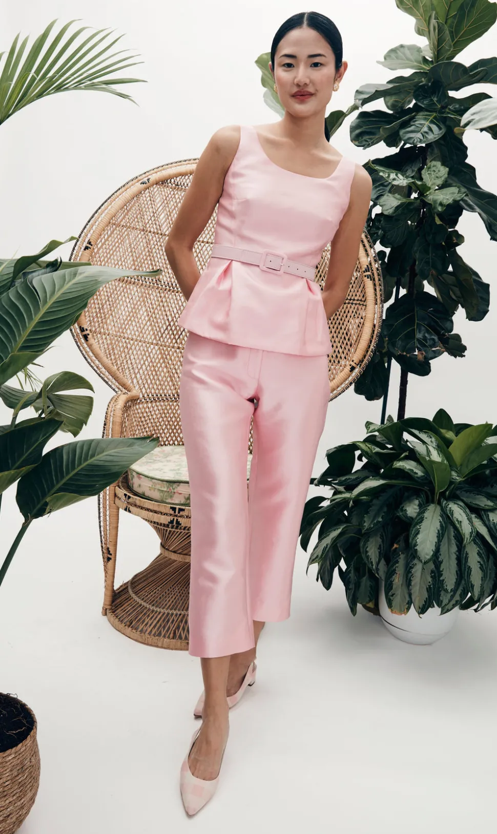MAE New York seeks to revitalize New York’s historical garment district by creating small-batch and made-to-order collections—modern interpretations of 1960s glamor—highlighting tailoring, luxury materials, and craftsmanship. Crafted from supple silk wool, the Dolores Pant in Tulip Pink channels the sharp lines of men’s tuxedo pants with a feminine twist. The soft color adds a modern, unexpected pop of elegance. Pair her with the Rose Top for a stunning set, or wear Dolores on her own for a refined, chic look. The Dolores Pant and Rose Top and named after the founder’s grandmother, Dolores Rose.
