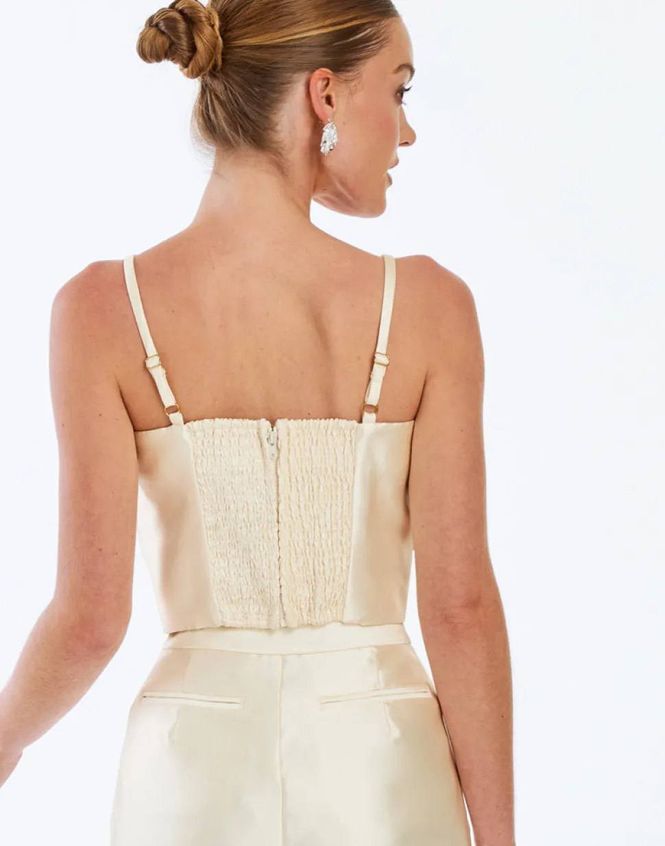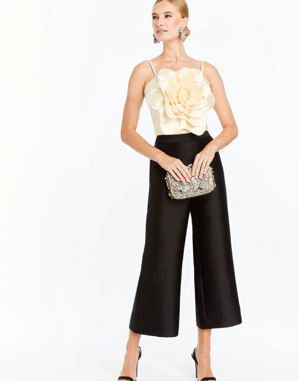 Welcome to the enchanting world of Mestiza New York, where heritage meets haute couture. Founded by Alessandra Perez-Rubio & Louisa Rechter Takacs, this brand is a tribute to their shared Filipino roots and the timeless elegance of their foremothers. Each piece, crafted with the highest quality to stand the test of time, will add polish to your wardrobe, and a touch of magic, too. The Dominique Flower Top in Ivory is where bold meets breathtaking, crafted in a luxurious silk blend with a sculptural floral detail that makes a statement. With adjustable straps and a flawless fit, it is the ideal balance of modern drama and effortless elegance.