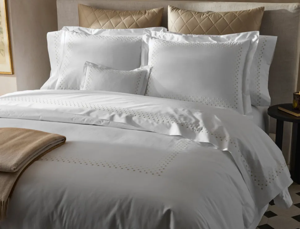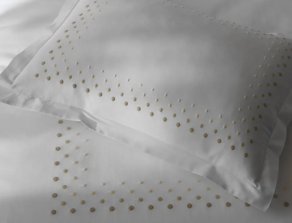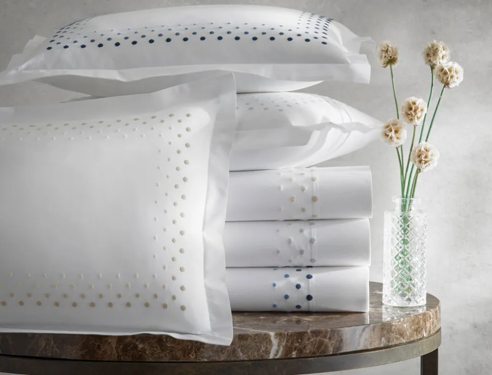 For nearly 100 years and three generations, Matouk has handcrafted luxury linens from the world’s finest materials. Their dedicated artisans in Fall River, Massachusetts are committed to creating the highest quality, most-loved bed, bath, and table linens for your home. The Dorothy Collection is a vibrant ombre design with four rows of monochromatic dot embroidery on the signature Milano percale sheeting. The result is an effortlessly cool, design-forward look that brings a modern sensibility to the bedroom.