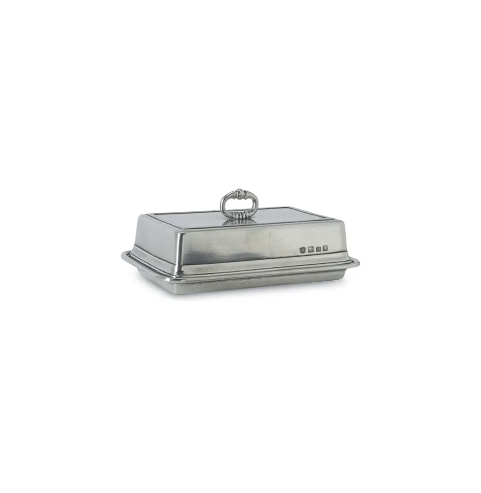 The Double Butter Dish with Cover is elegant enough to complement your refined tablescape or elevate any common countertop. A must-have for the ultimate hostess, MATCH pewter—a valuable metal composed of tin, copper, and antimony—is handmade by artisans in Northern Italy. Its classic look complements both traditional and modern place settings and recalls decadent celebrations of the past (talk about heirloom-worthy!) Everything is made with an alloy that is food-safe, lead-free, FDA-approved, and requires very little care—and each piece is marked with the manufacturer’s signature “M.” No matter what you’re serving, MATCH’s carefully considered details make the meal.