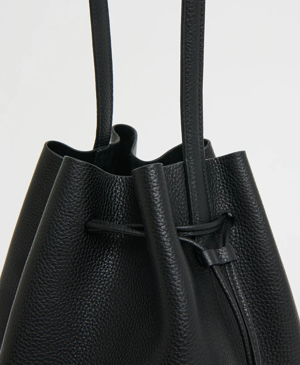 Founded in 2013, Mansur Gavriel redefines luxury through its distinctive approach to color and form. Born out of a passion for art and design, Rachel Mansur and Floriana Gavriel created two simple silhouettes—launching with just a bucket and tote. The brand’s designs, dreamt up in New York and crafted in Italy, continually challenge the notions of what expression can be. The Drawstring Cabas in Black reimagines the brand’s iconic Cabas silhouette into a softly structured bucket bag. Featuring elongated handles, a magnetic closure, and an interior pocket, this spacious design is refined yet practical—large enough to accommodate a 14″ MacBook Pro with ease.