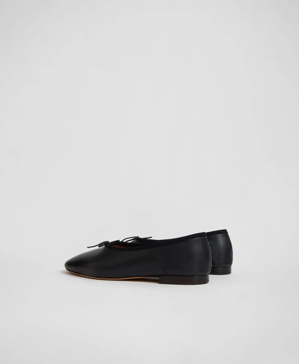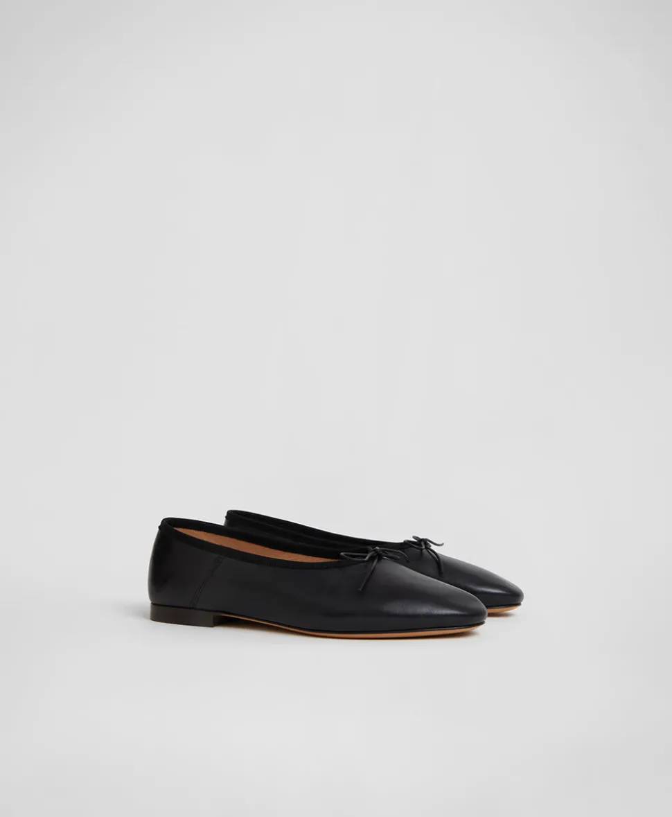 Founded in 2013, Mansur Gavriel redefines luxury through its distinctive approach to color and form. Born out of a passion for art and design, Rachel Mansur and Floriana Gavriel created two simple silhouettes—launching with just a bucket and tote. The brand’s designs, dreamt up in New York and crafted in Europe, continually challenge the notions of what expression can be. The Dream Ballerina in Black offers a romantic twist on the everyday flat, crafted from buttery Italian lambskin with a signature knotted bow, grosgrain trim, and adjustable fit for all-day elegance and comfort.
