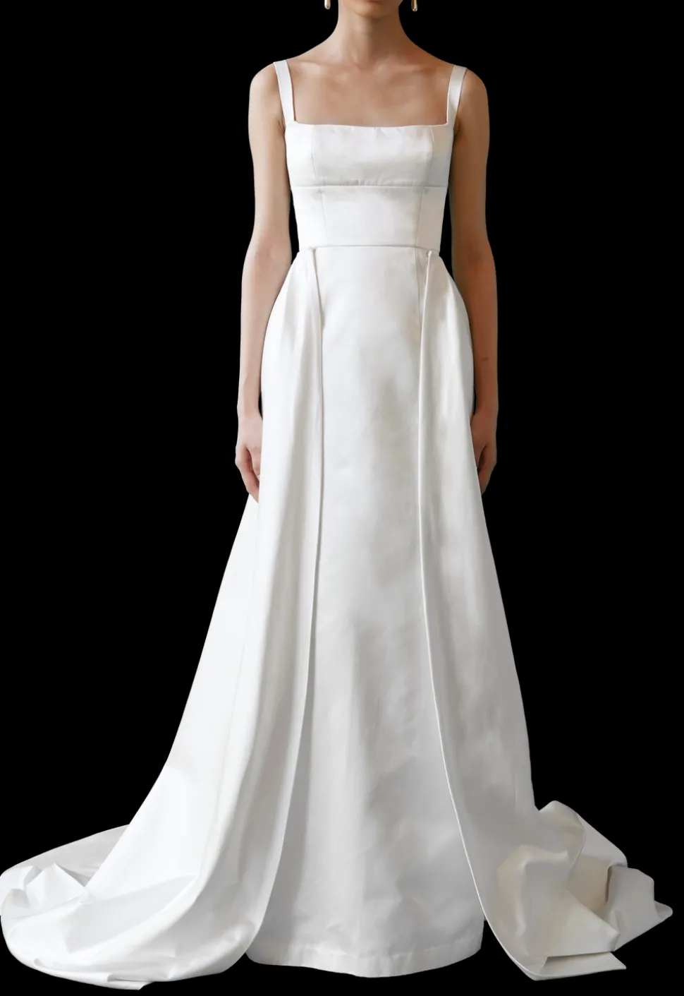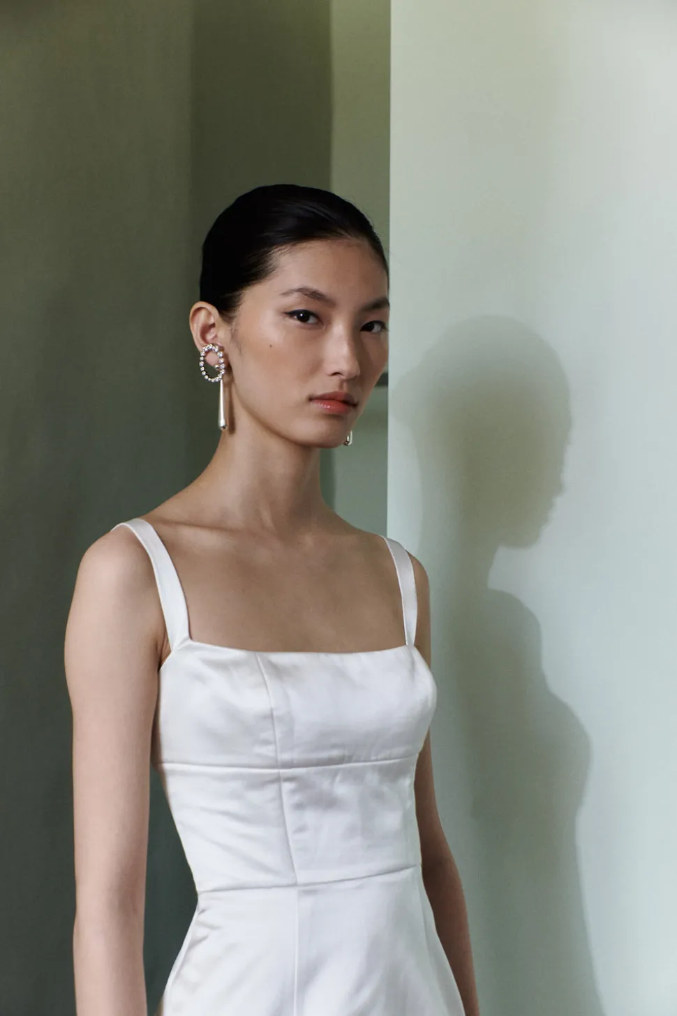 Handmade at its London atelier, The OWN Studio’s signature style combines pared-back, contemporary silhouettes with unexpected vintage details resulting in considered, minimal styles for the modern woman. The label brings a fresh and contemporary approach to wedding and evening wear. Inspired by the contemporary cut of the much-loved STYLE 001, the Duchesse Satin Column Gown | STYLE 137 features a slightly wider strap and is crafted from signature duchesse satin for a luxe, structured finish. Pair it with STYLE 131, a detachable train that clips in invisibly at the waist; adding an element of dramatic flair with seamless ease. The just-right blend of modern sophistication and timeless elegance, this piece is designed to make an unforgettable statement.