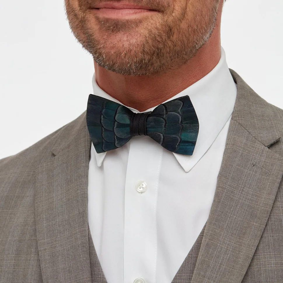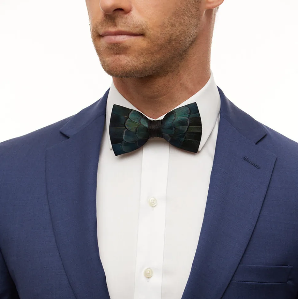 Brackish began with one feather bow tie designed by Ben Ross and gifted to his groomsman, Jeff Plotner. Since its inception, the brand has blossomed into a full line of men’s and women’s accessories designed and handcrafted in Charleston, South Carolina with each piece focused on honoring the beauty found in nature. The Dunbar Bow Tie is inspired by a starry night sky in the autumn air. Featuring a deep iridescent navy, this piece boasts a style that is like the legend of the Big Dipper lying close to the northern horizon in the early evening. Made with pheasant feathers.
