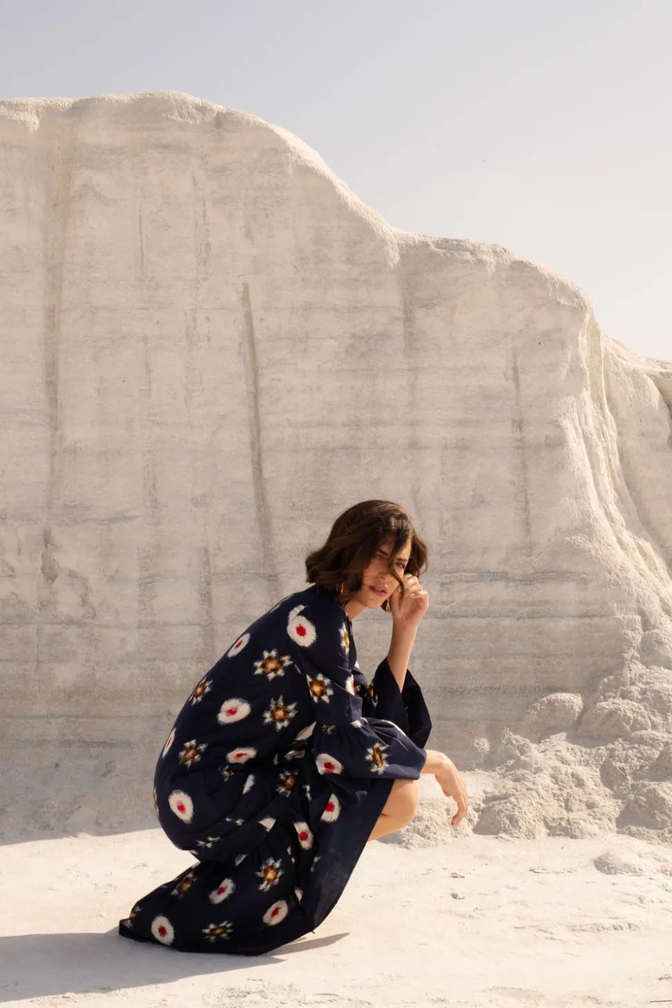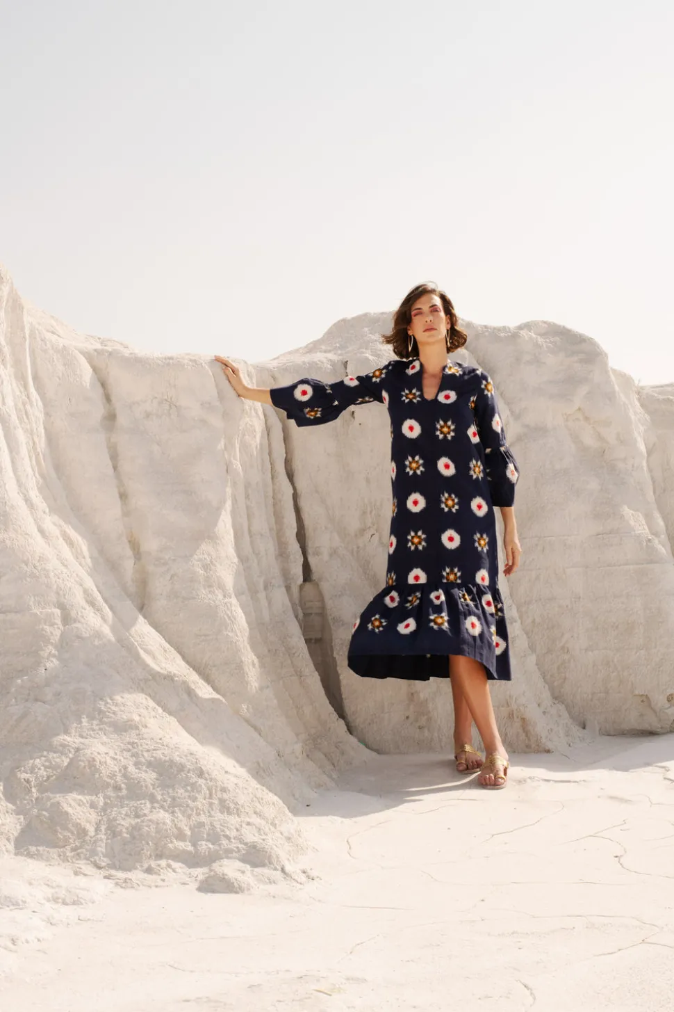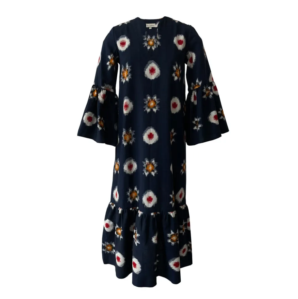 De Castro showcases a seamless and unique blend of traditional Indian craftsmanship, contemporary design, and the founder’s Colombian heritage. Every piece is handmade by artisans, using time-honored techniques and the finest cotton and silk fibers, resulting in exceptional quality, sustainability, and style. Made from organic hand-loomed cotton and carefully handwoven in the southern region of India, this tunic dress boasts a longer hemline and stunning flounce sleeves.