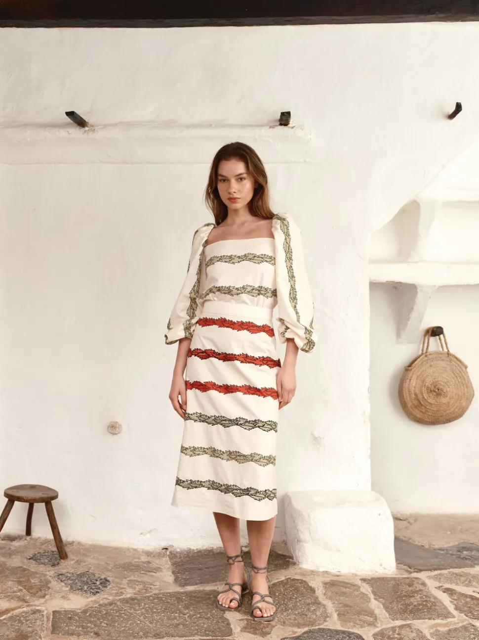 Inspired by Colombia’s magnificent tropical landscapes, Maria Fernanda Valencia built Juan de Dios to not only share that beauty, but give back to the land and its people. Engaging with local artisans, the brand’s consciously crafted swimwear and accessories arrive in unique collections that both flatter and feel amazing. The El Carmen Embroidered Cotton Midi Skirt in Purple Ivory Striped Helechos features a classic silhouette combined with a stunning print print on breezy Cotton. Style with Magdalena Blouse to create the ultimate look.