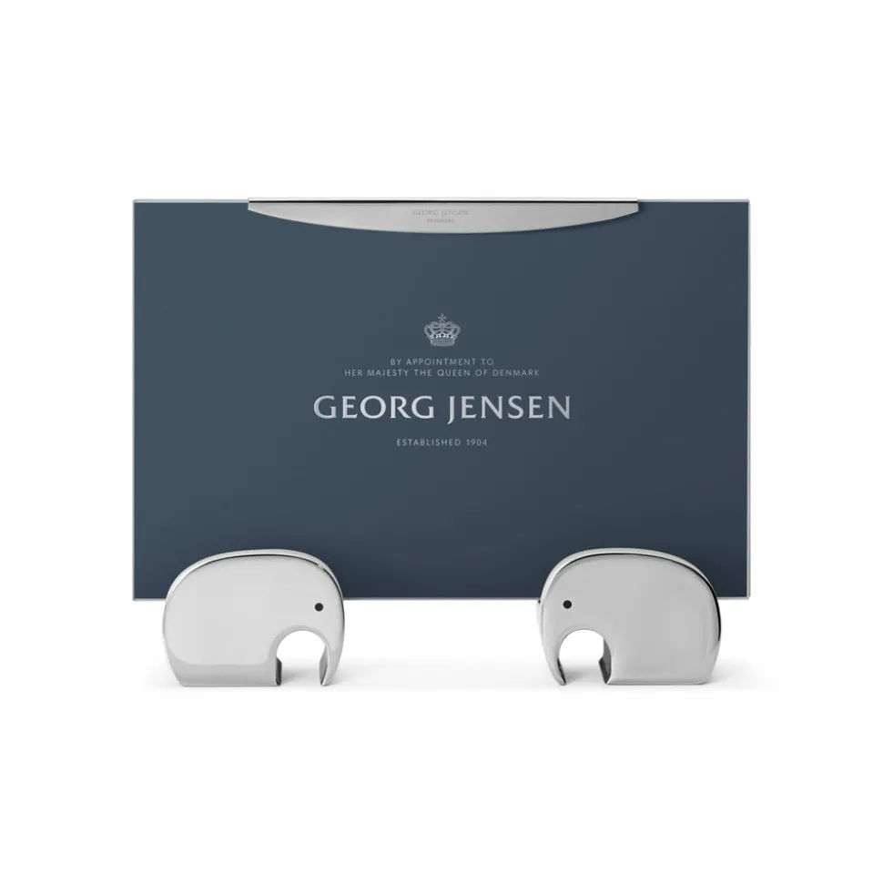For over a century, Georg Jensen has developed jewelry, silverware, and home decor with purposeful, timeless, and functional beauty in mind. Rooted in Scandinavia, and inspired by the lines of Art Nouveau, the brand innovates, sustainable, unmistakable design with a distinctive vigor and unmatched quality. Featuring two small elephants, the standing Elephant Picture Frame will treasure your most wonderful memories. Both the elephants and the stainless steel holder can easily be repositioned to allow the photo frame to be positioned both vertically and horizontally.