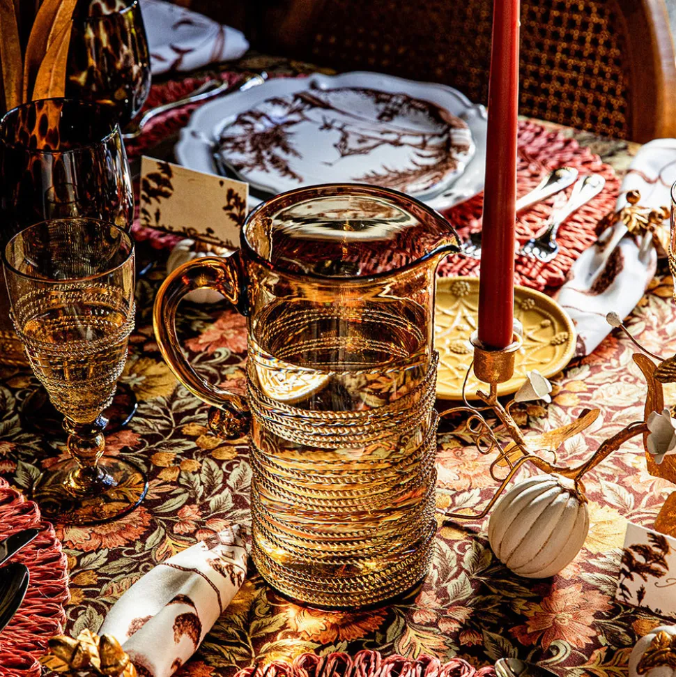 As newlyweds and self-proclaimed romantics, Capucine and David Gooding founded Juliska in 2001 with a small collection of mouth-blown glasses. Today, it’s the tableware and home brand every good hostess needs to know. The Ella Pitcher in Amber brings a heavy pour of glamour to any gathering, with its jewelry-like spiraling thread that catches the light. Mouth-blown by master artisans, it’s ideal for serving iced tea, batch cocktails, or even as a striking vessel for fresh flowers.