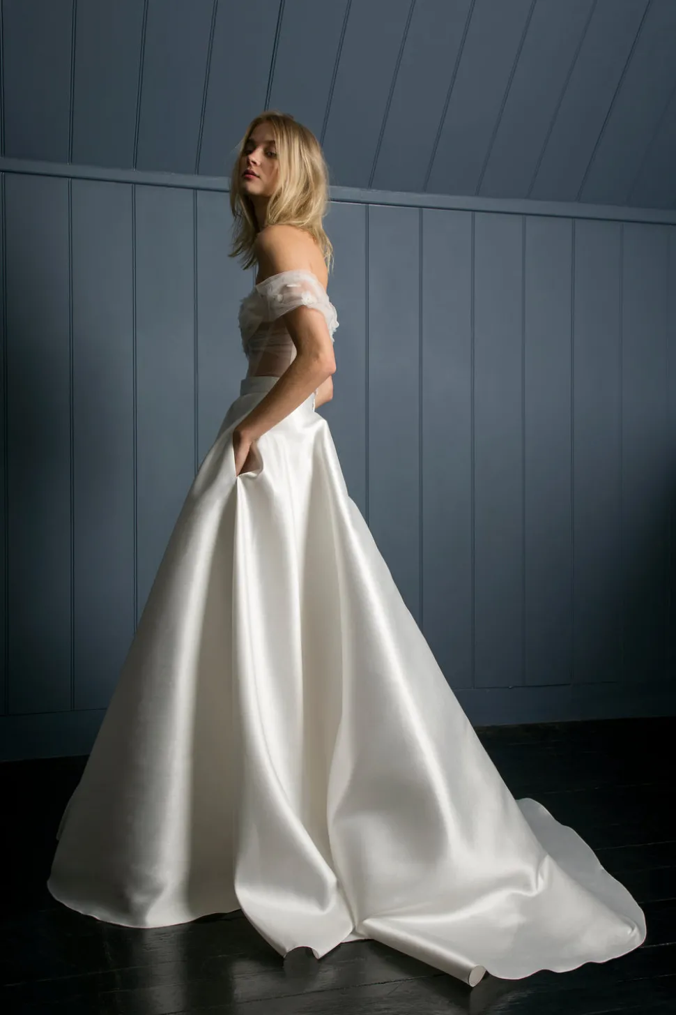 Luxury bridalwear brand Halfpenny London weaves Brit cool with a luxe sensibility, creating innovative, chic dresses and separates for the modern woman. The Ellie Skirt is a luminescent full-circle design that shines bright amongst candlelight and under shimmering disco balls.