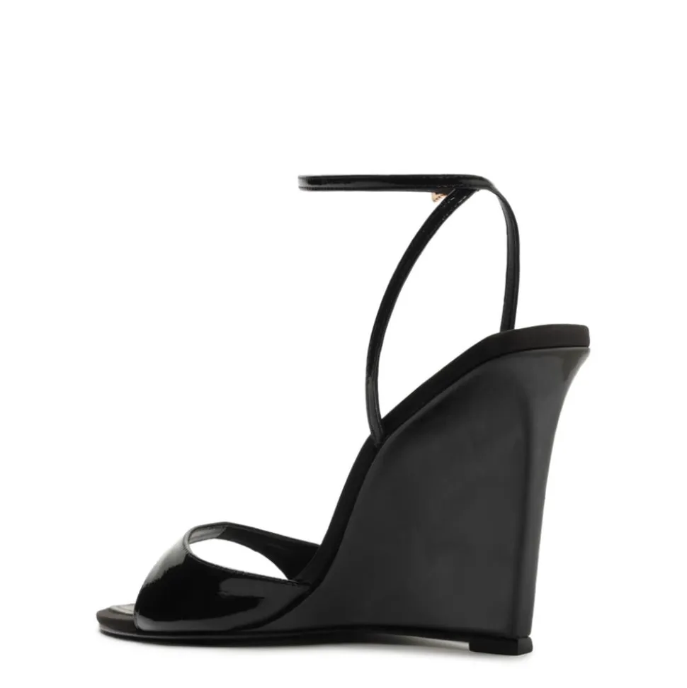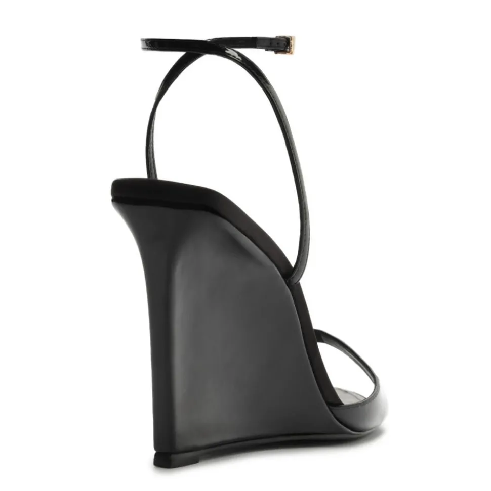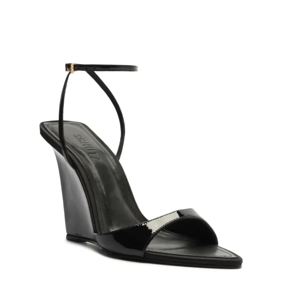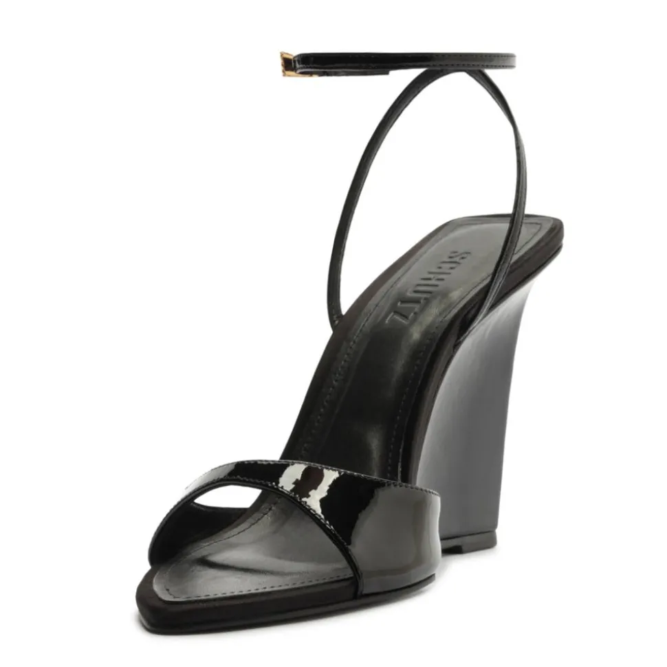 Founded in 1995 by Alexandre Birman, Schutz redefines attainable luxury with its stylish footwear. With each new release, the brand delivers of-the-moment collections, defined by confident, bold, designs around which entire outfits can be built. The Elodie Sandal in Black takes lift, shine, and allure to new heights, pairing high-shine patent leather with a sleek ankle strap for polish, and a bold wedge heel for modern edge.