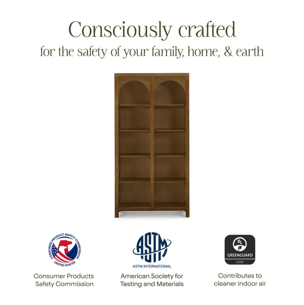 Made to treasure, Namesake brings quiet sophistication to the nursery and beyond. Imbuing heirloom-quality craftsmanship with modern sensibility, these timeless essentials are made to be cherished for years to come. The Eloise Assembled Bookcase in Natural Walnut pairs refined design with lasting function. With its gently curved frame, warm wood tone, and ten open shelves, this thoughtfully crafted piece provides elegant storage that grows with your family from nursery to beyond.