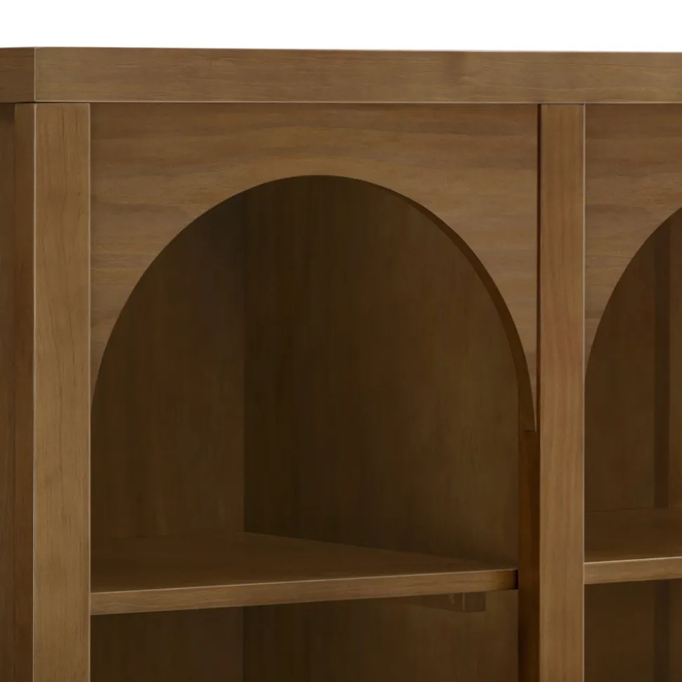 Constructed from sustainably sourced wood with a natural walnut finish. Features ten open shelves for versatile storage and display. Arrives fully assembled. GREENGUARD Gold Certified.