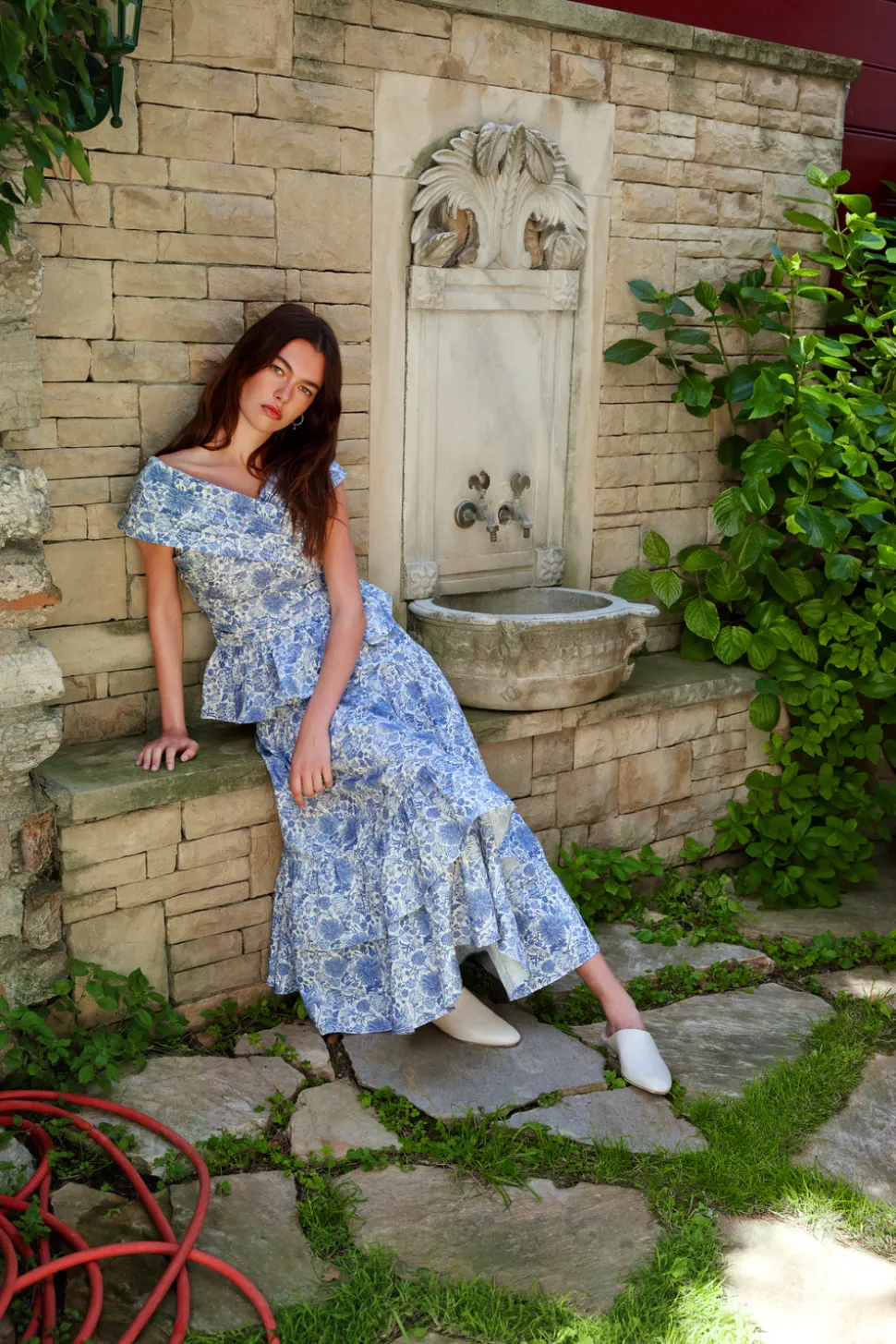 Loulou, founder of Loulou La Dune, extends her refined feminine touch from interior design and tableware into the realm of ready-to-wear fashion. Recognizing the desire for beautifully crafted, effortless, and chic clothing, she has created a capsule collection that integrates elegance and ease into everyday wear. The Elsa Skirt in Blue is crafted from flowy, light cotton to give the ultimate comfort and style. This three-tiered design adds just the right amount of volume, giving the skirt a graceful and romantic look. The full-length, flared silhouette makes it a versatile piece that can be effortlessly paired with its various matching tops.