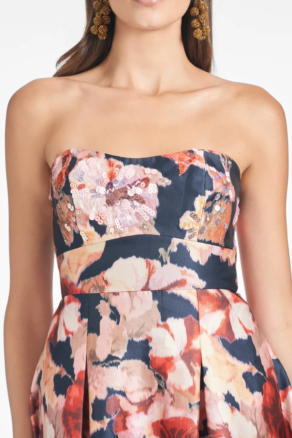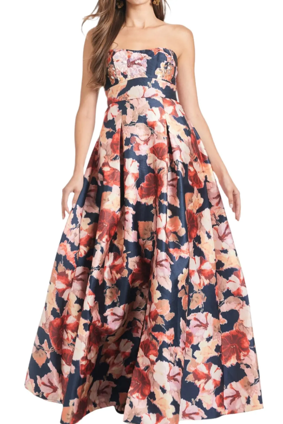 Born in India, Sachin and Babi bonded at New York’s Fashion Institute of Technology, and soon launched an embroidery business that worked with top houses, like Oscar de la Renta, and Manolo Blahnik. Today, the brand works with their own factory in Mumbai, controlling quality at every stage, and producing womenswear that is at once unique, beautiful, and wearable. The Embellished Giovanna Gown in Bedford Bouquet is the ball gown that flatters in all the right places. Featured in an all-over bouquet of ikat florals, it is lit at the subtle sweetheart neckline with sequin embellishment, a touch of something special to an otherwise classic silhouette.
