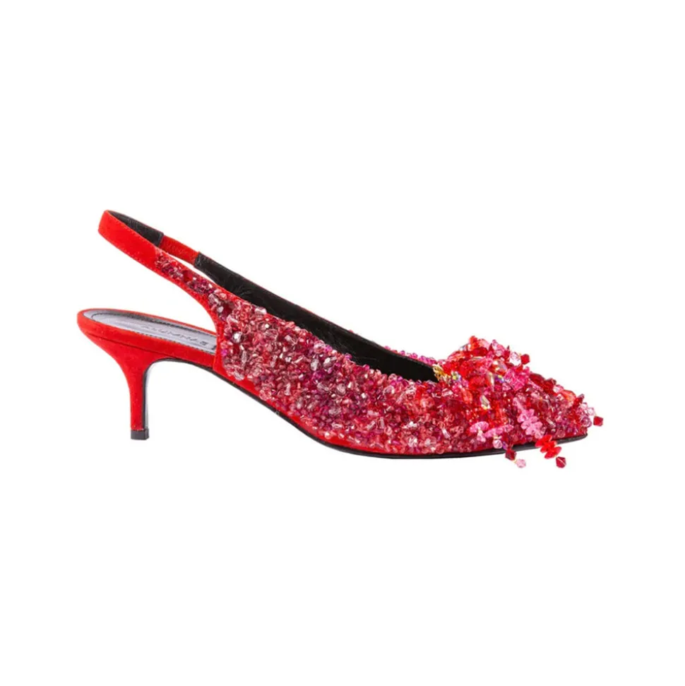 After years spent working alongside such designers as Rosie Assoulin and Gabriela Hearst, New York City-based Patricia Voto forges her own path with One/Of, a women’s ready-to-wear brand that strikes a balance between heritage and contemporary (and always sustainable). Crafted in Italy, with rich suede adorned with crystals, the Embellished Susie Pumps in Red are sling-back shoes with a pointed toe and fringed crystal clips. Those ruby slippers have gotten an upgrade.