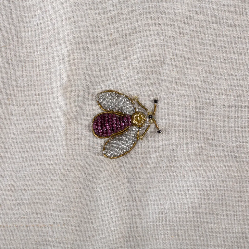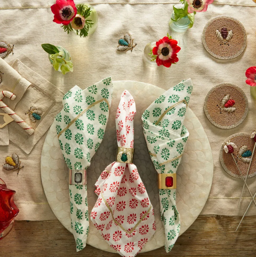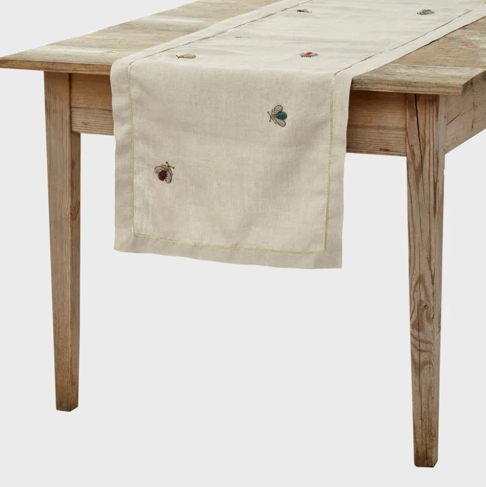 Inspired by her mother’s flare for holiday decorating, Joanna Buchanan has turned her love of travel and knowledge gleaned from twenty years in fashion retail into an eclectic line of tabletop, barware, gifts, and decor. Dining indoors or al fresco, the Embroidered Sparkle Bee Table Runner brings a whimsical, rustic quality to your meals. At once chic and utterly homey.