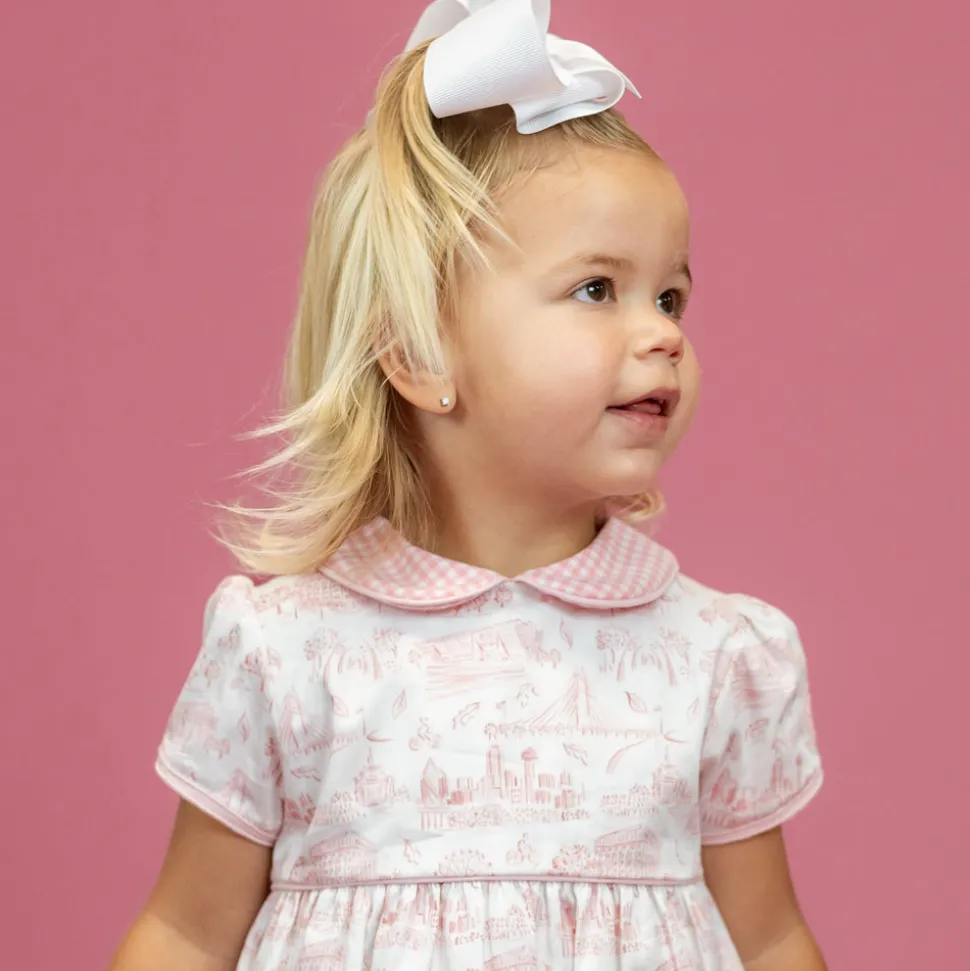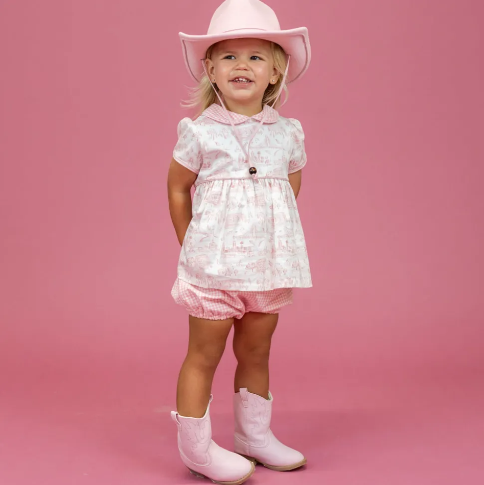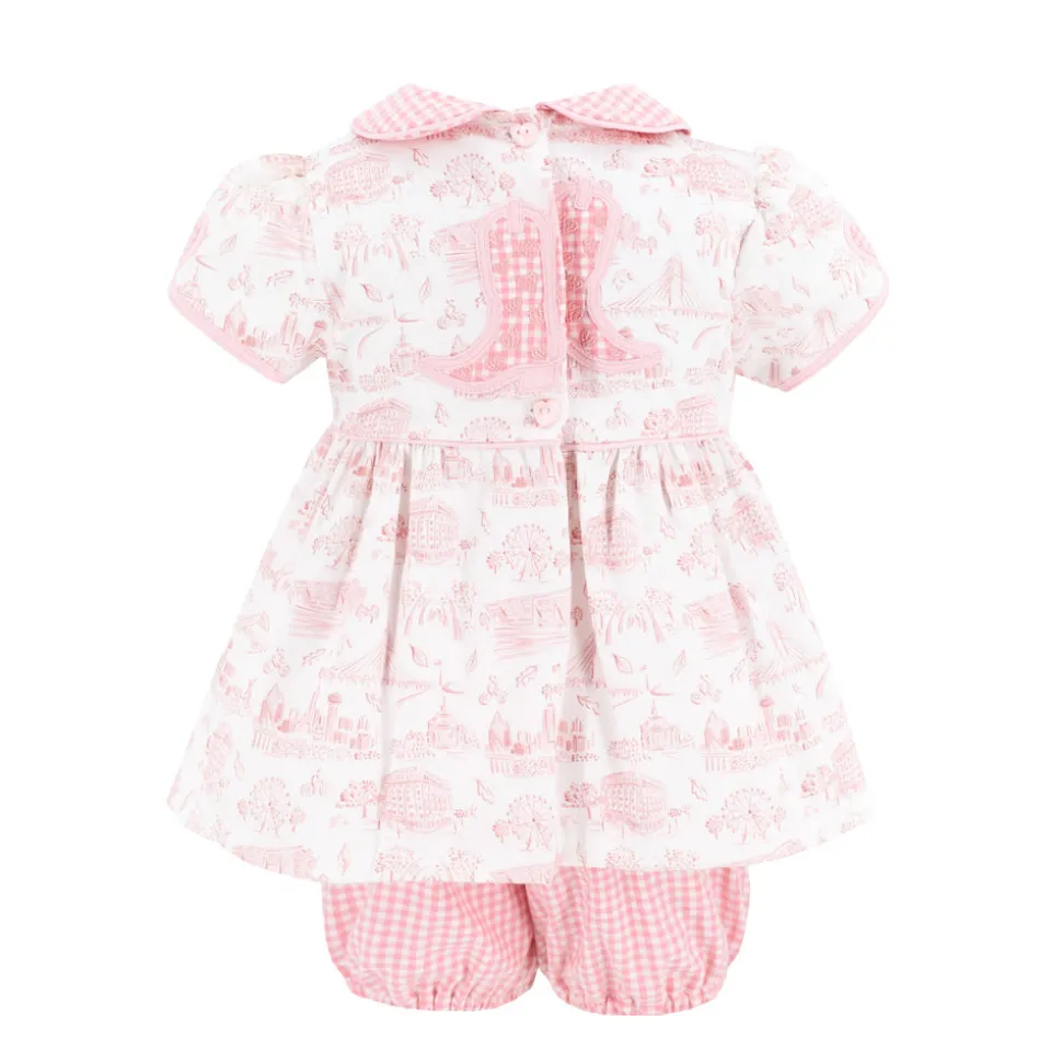 Inspired by the beauty of motherhood, Dondolo is a luxury lifestyle brand that provides beautiful, heirloom-quality clothing for generations to come. Each design is thoughtfully crafted in Colombia with ethical manufacturing, making every piece even more special. The Emery Girl Set in Dallas Print is adorned with delightful details. This charming two-piece ensemble features a dainty pink top adorned with intricate embroidery and the sweetest pink gingham.