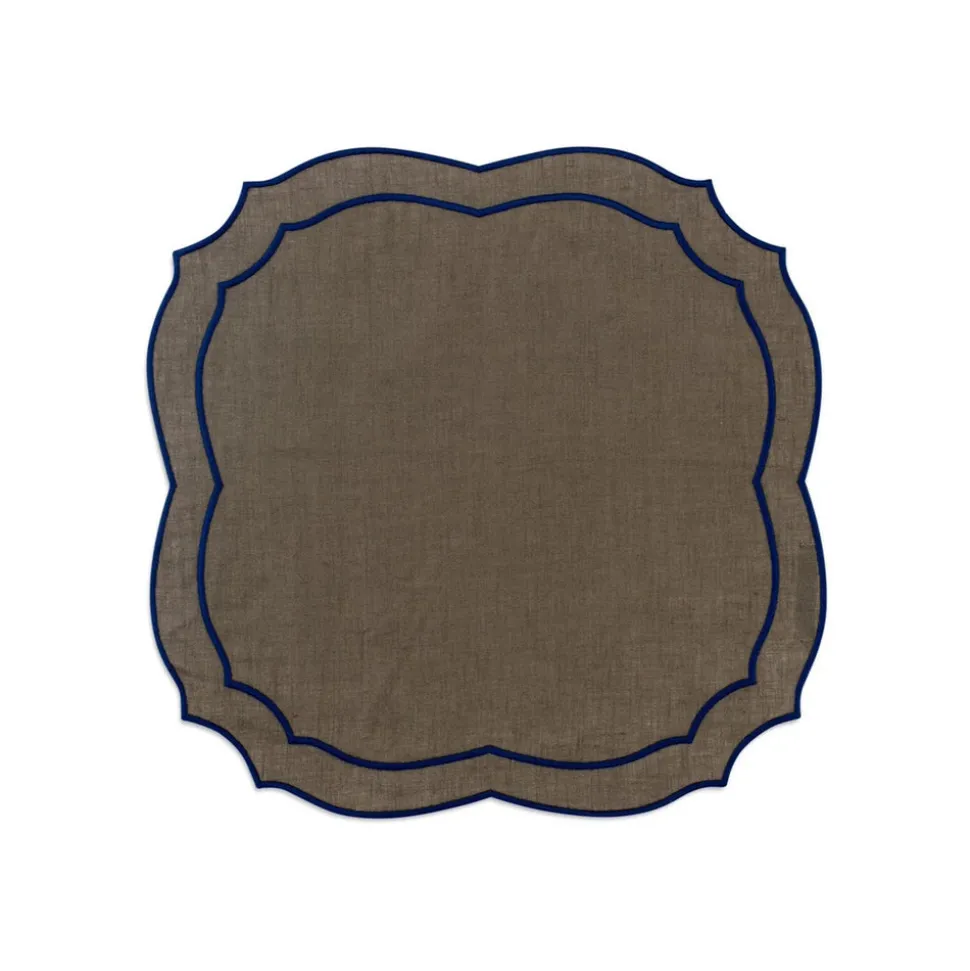 To liven up the table and the conversation, look to Loulou La Dune. Based in Istanbul, La Dune is an artisan with an architecture background who specializes in luxury linens. Perfect for family gatherings and dinner parties, the Emma napkin features a deep green pattern with navy hand embroidery.