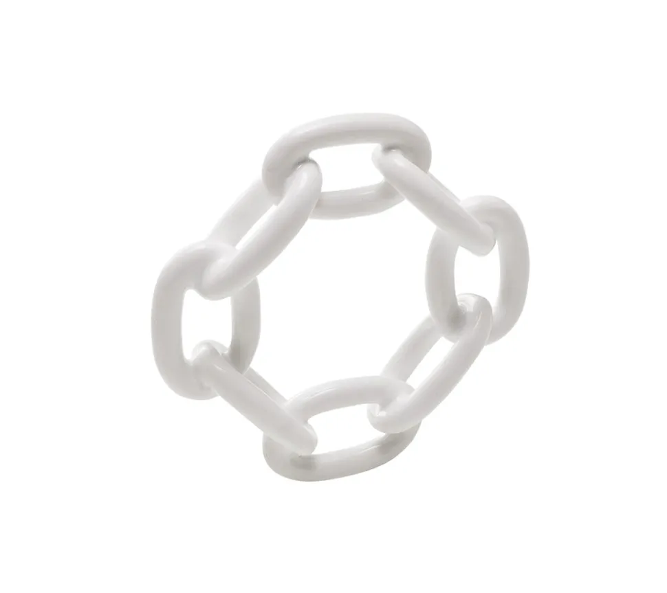 Kim Seybert designs artisan-made tabletop decor and luxury home accessories. Create a well-dressed dining look with the brand’s range of elegant tableware, placemats, runners, chargers, plates, napkins, flatware, and more. Inspired by timeless, chain-link jewelry, the Chain Link Napkin Ring in White, Set of 4 will dress up any table. The napkin rings features classic oblong-shaped interlocking rings making it the perfect statement piece for a place setting. Use it for occasions that require an elegant touch and pair it with the Classic Napkin collection.