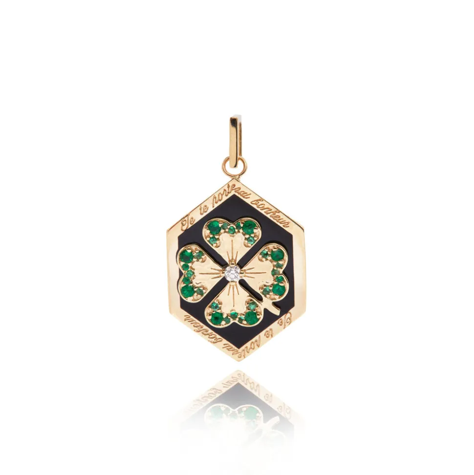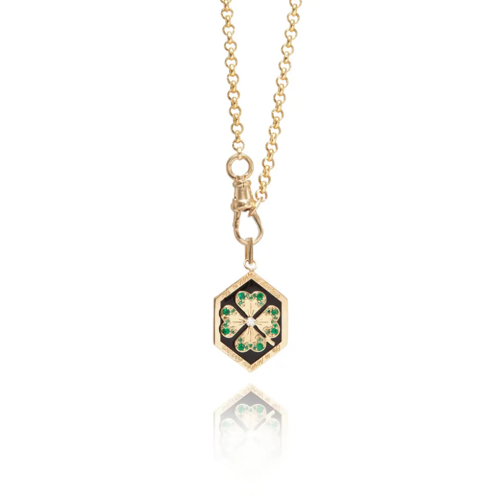 From her studio in New York City, Ashley Zhang designs one-of-a-kind fine jewelry that will last a lifetime. The Enamel Clover Love Token draws inspiration from the French charms of the 1960s. The French transcription shares an earnest message from the pendant to its beholder, stating, “I will bring you luck.” A gift for a friend–or for yourself, the charm is hand-painted with black enamel and crafted from 14K gold with diamonds atop the clover leaves.