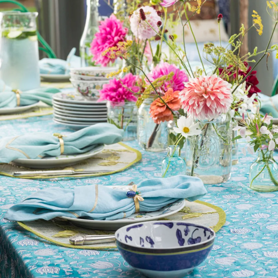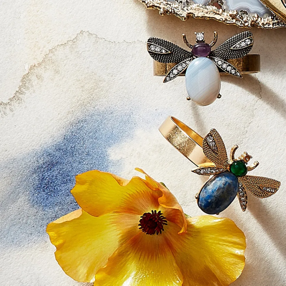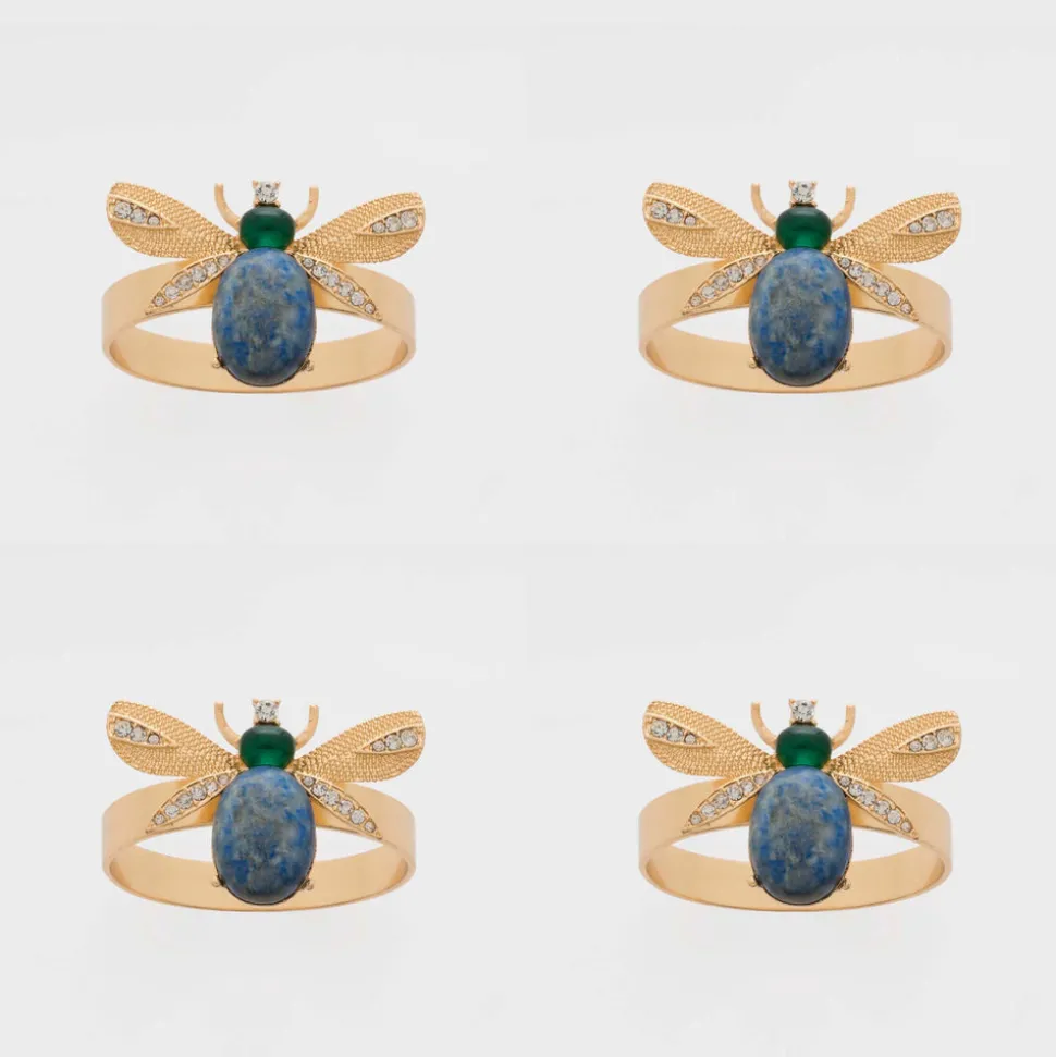 Inspired by her mother’s flare for holiday decorating, Joanna Buchanan has turned her love of travel and knowledge gleaned from twenty years in fashion retail into an eclectic line of tabletop, barware, gifts, and decor. Boasting semi-precious lapis lazuli as the body stone, as well as unbelievably intricate details, Etched Wing Big Skinny Napkin Rings in Lapis Lazuli, Set of Four is a gorgeous accent to any table.