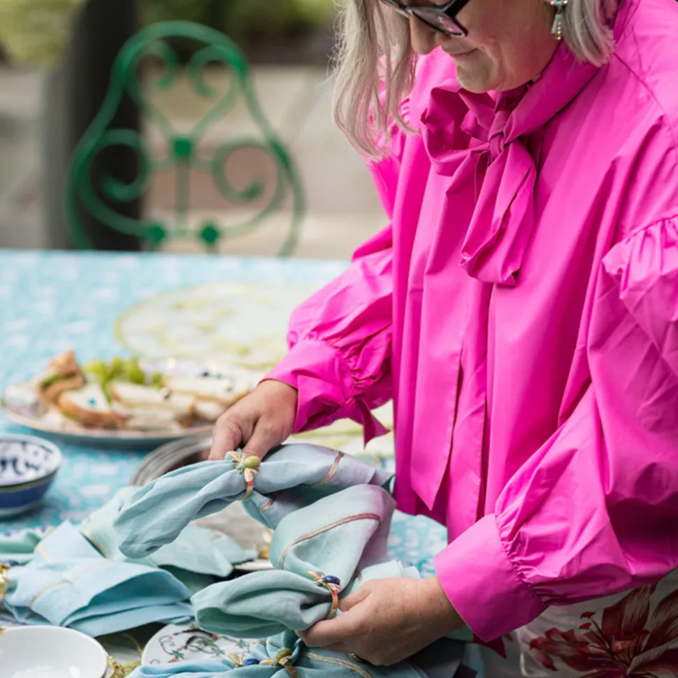 Inspired by her mother’s flare for holiday decorating, Joanna Buchanan has turned her love of travel and knowledge gleaned from twenty years in fashion retail into an eclectic line of tabletop, barware, gifts, and decor. Boasting semi-precious jasper as the body stone, as well as unbelievably intricate details, the Etched Wing Bug Skinny Napkin Rings in Lemon Jasper, Set of Four is a gorgeous accent to any table.