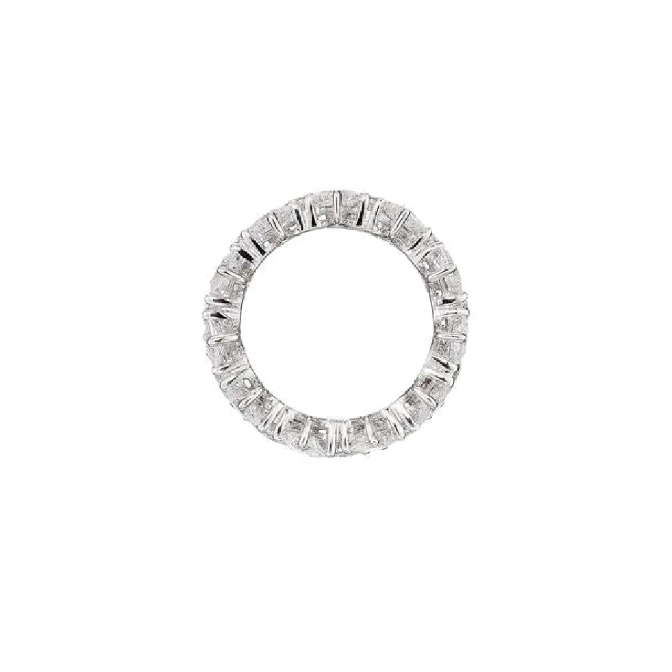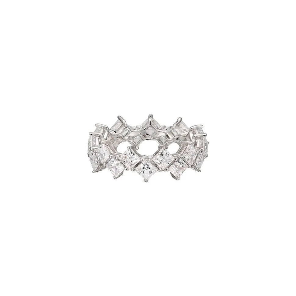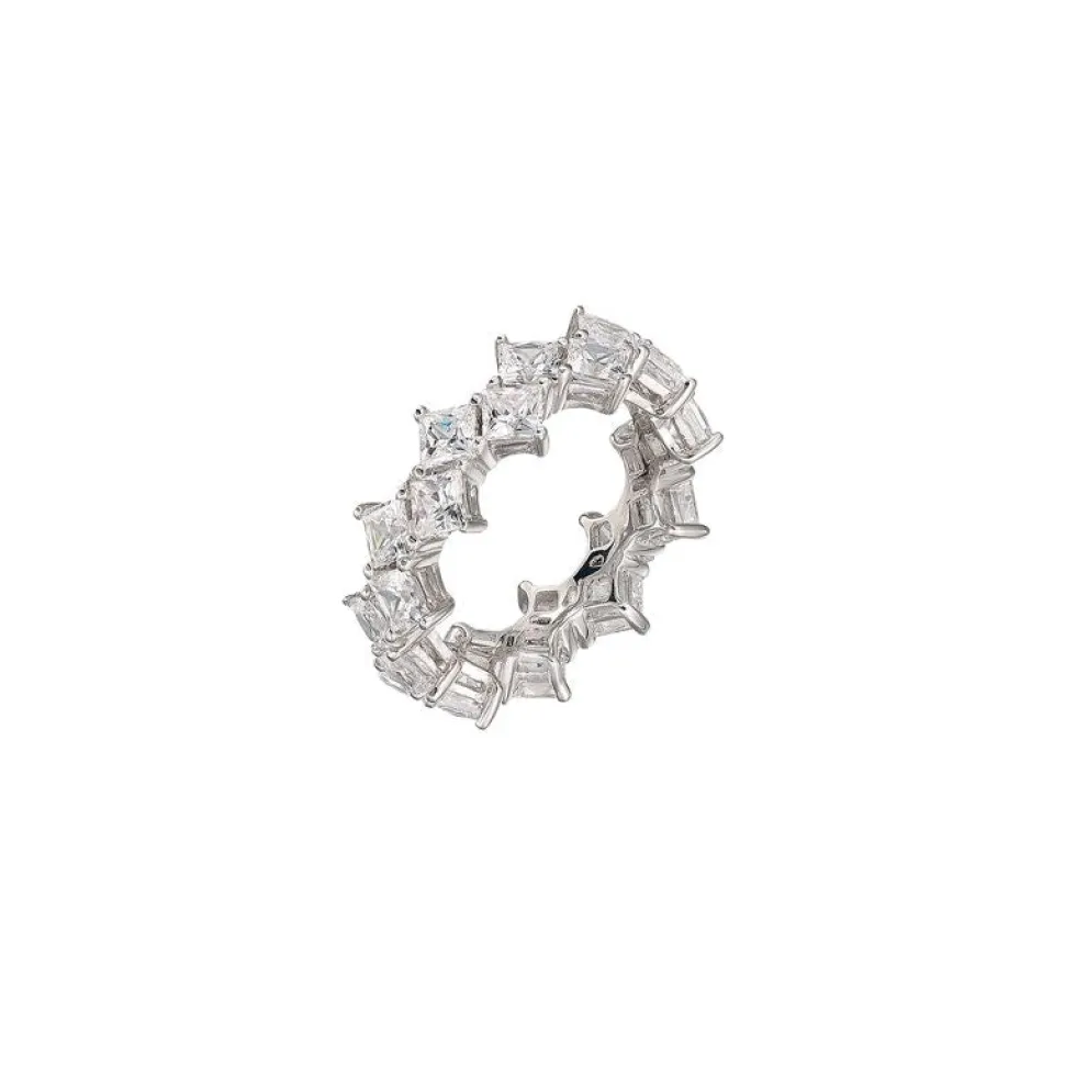 London-based Anabela Chan’s background in architecture and luxury fashion led to the first fine jewelry line to champion laboratory-grown gemstones. Today, its artisanal craftsmanship and sustainable innovations have found a place in the collections of royals, Rihanna, Taylor Swift, and sophisticated women worldwide. The Eternity Princess Diamond Ring is a playful stacking ring crafted in 18K white gold & rhodium vermeil with a dazzling array of princess cut laboratory-grown simulated white diamonds of the highest clarity and brilliance totallng 6.7 carats in weight.