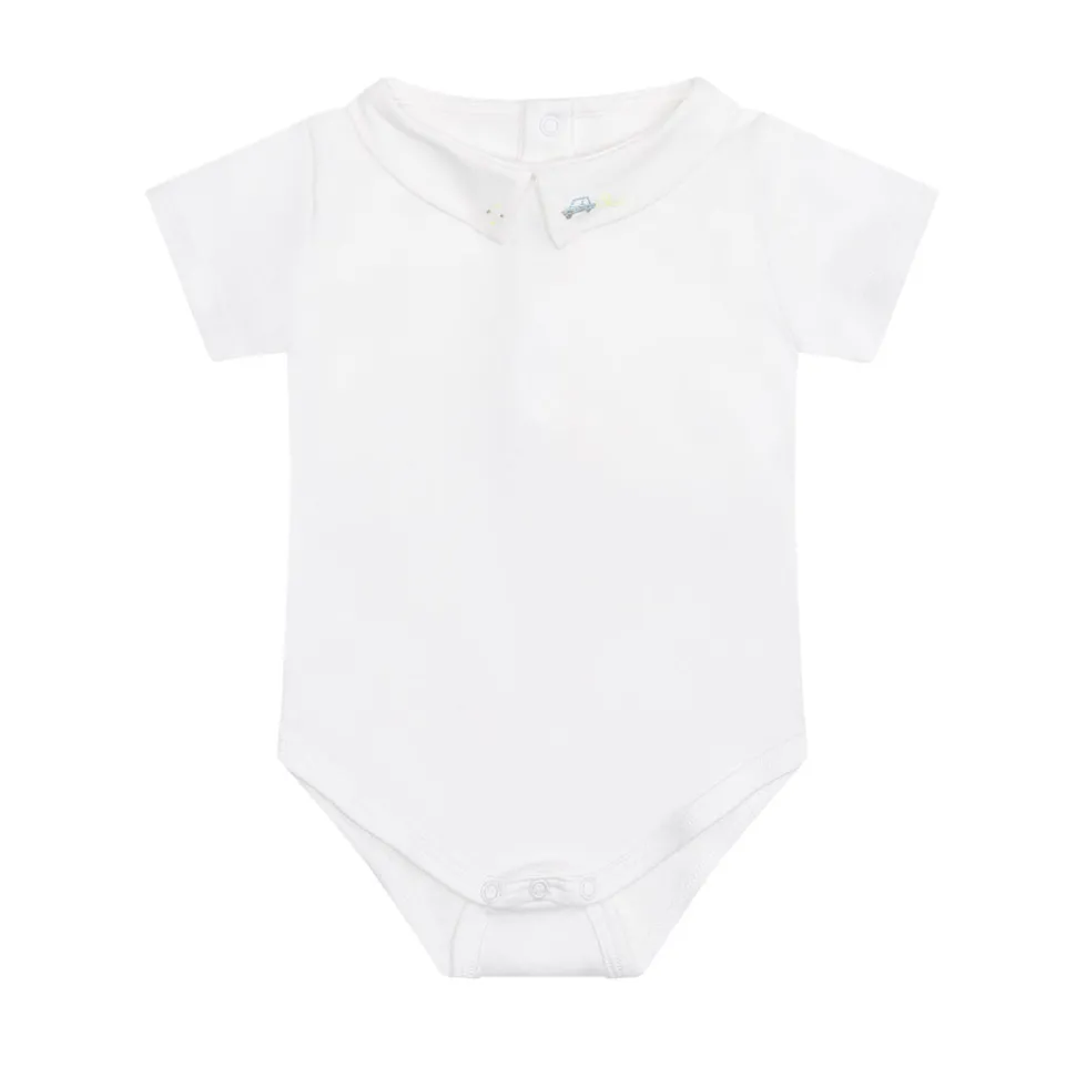 Princess Marie-Chantal of Greece’s eponymous label is known internationally for the unmatched style and the quality of materials—like their organic, hand-picked Pima cotton—which lies at the heart of its baby essentials and contemporary children’s clothing. The Chester Hand Embroidered Submarine Onesie is hand-embroidered with a camion on its handsome little collar.