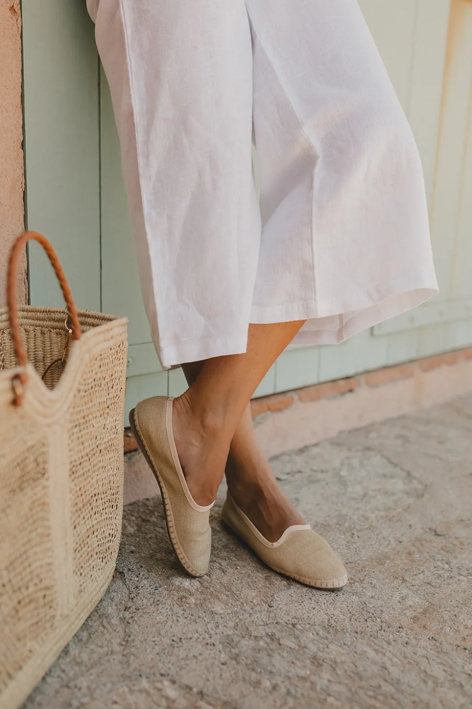 Inspired by the resplendent colors and simplicity of the Mediterranean, Le Mogador looks to redefine resort accessories with their minimal, luxurious footwear. Combining time-tested artistry and tradition with modern fashion sensibilities, these are sandals that both embody, and feel at home, in the world’s most beautiful locales. Crafted from soft, breathable linen, the Eva in Linen Sand offer unparalleled comfort and style. The natural fibers ensure your feet stay cool and fresh, while the classic design adds a touch of sophistication to your loungewear. Whether you’re starting your day or unwinding in the evening, these linen slippers are the ultimate choice for a touch of everyday elegance.
