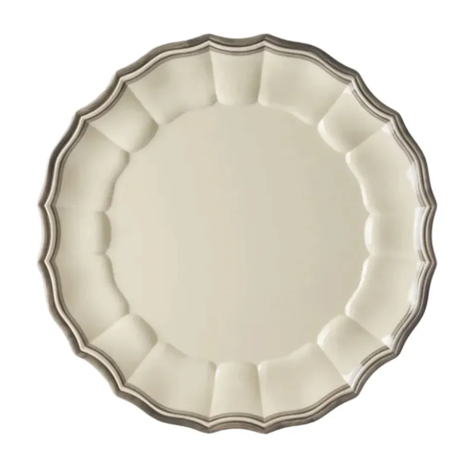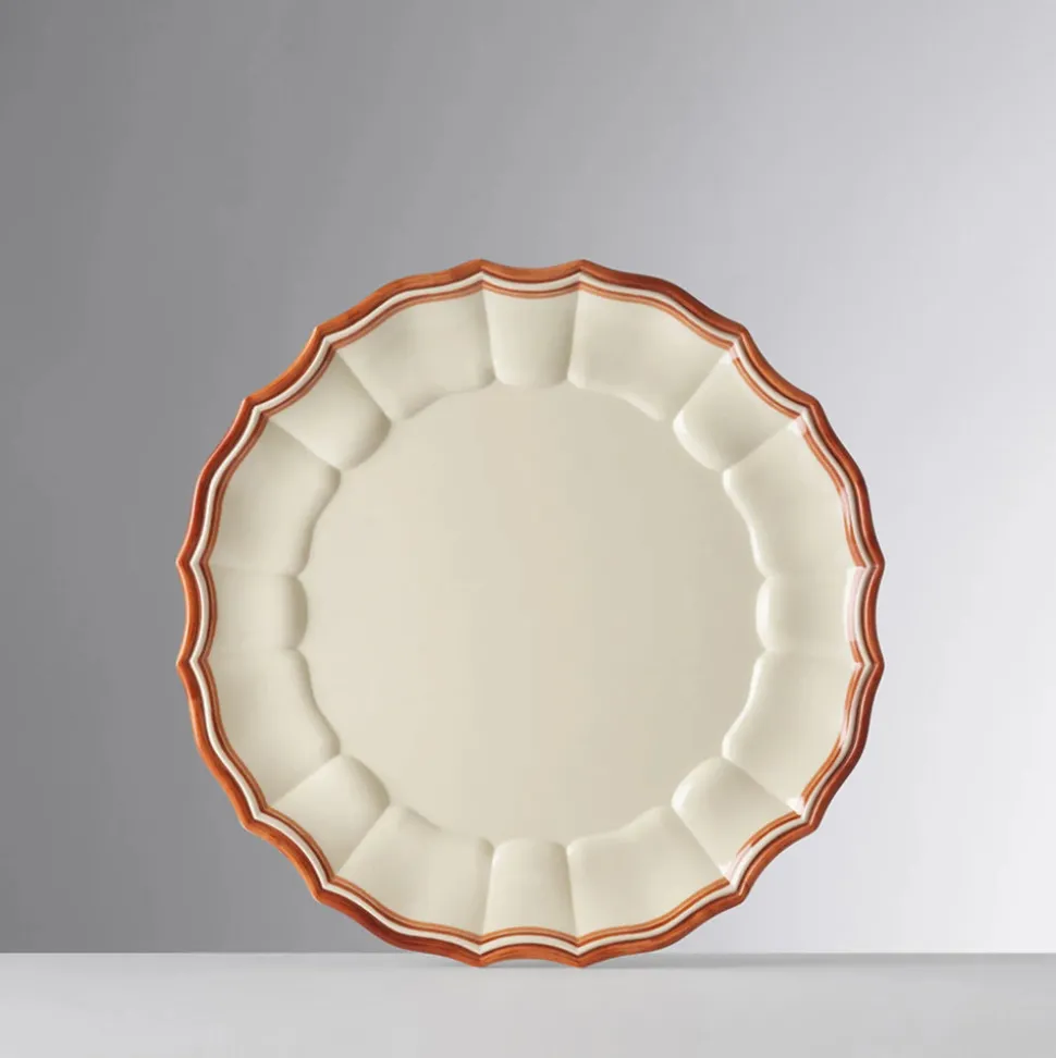 Mario Luca Giusti brings timeless Italian elegance to everyday living with pieces that fuse classical form and contemporary innovation. Crafted from luminous synthetic crystal, each design transforms functional tableware into a visual statement—equally suited to indoor and outdoor use. The Eva Dinner Plate features a delicately scalloped edge that adds graceful detail to everyday dining. Made from durable melamine, it’s a refined choice for everything from backyard lunches to elegant outdoor dinners.
