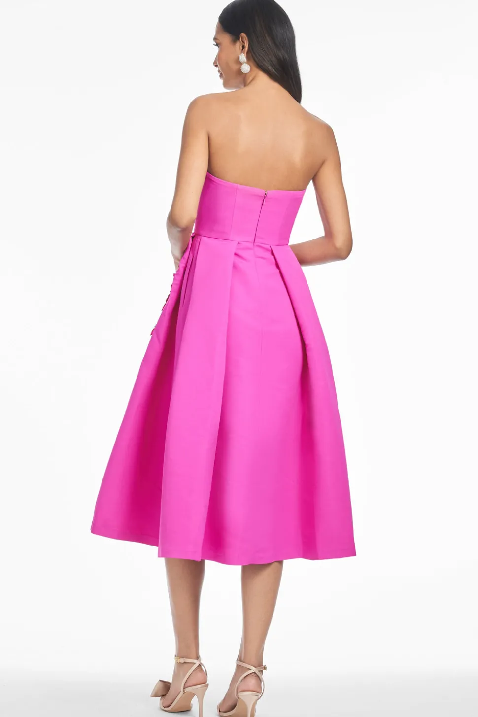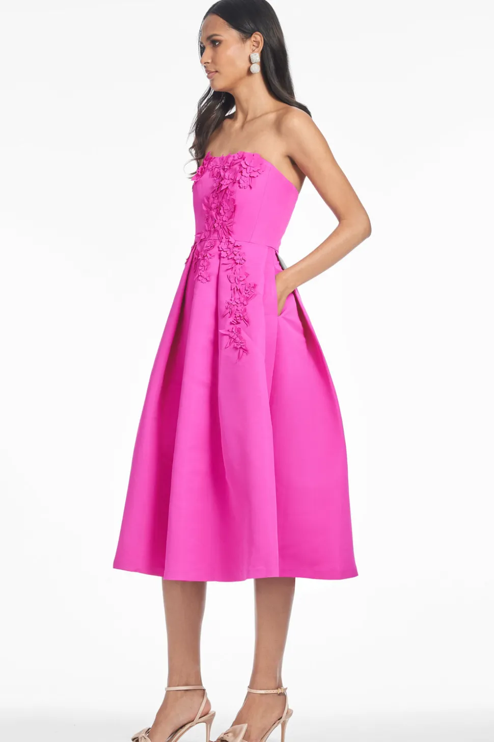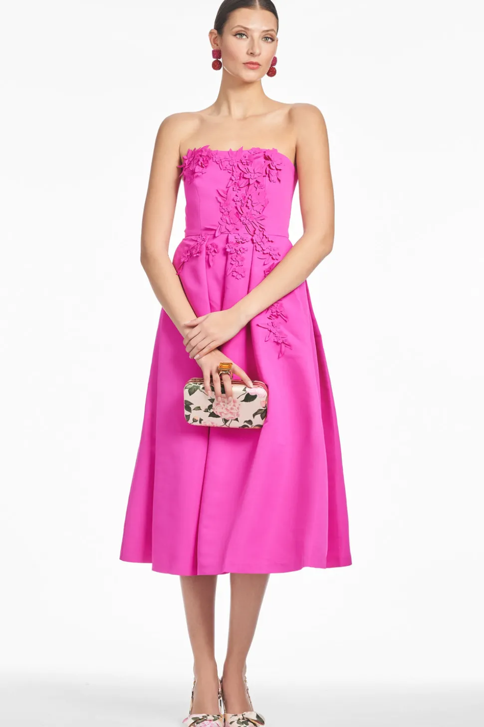 Born in India, Sachin and Babi bonded at New York’s Fashion Institute of Technology and launched an embroidery business, working with top houses, like Oscar de la Renta, and Manolo Blahnik. Today, the brand works with their own factory in Mumbai, controlling quality at every stage, and producing womenswear that is at once unique, beautiful, and wearable. Fabulous, and flirty, the Evie Dress in Cerise features delicate floral appliqué which cascades down the bodice in a vibrant, memorable shade of pink.