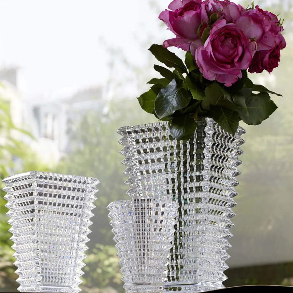 Founded in 1765, Baccarat is renowned throughout the world for the remarkable quality and timeless design of its glassware. With master blowers, cutters, engravers, and gilders honing their techniques to perfection, Baccarat introduces you to the finest crystal and an entire world of excellence. The wavy design of the Eye Vase Small Round Clear is the result of an extraordinary technique: exterior horizontal cuts and interior vertical cuts combine to produce a magic visual effect. An elevated display for fresh-cut flowers.