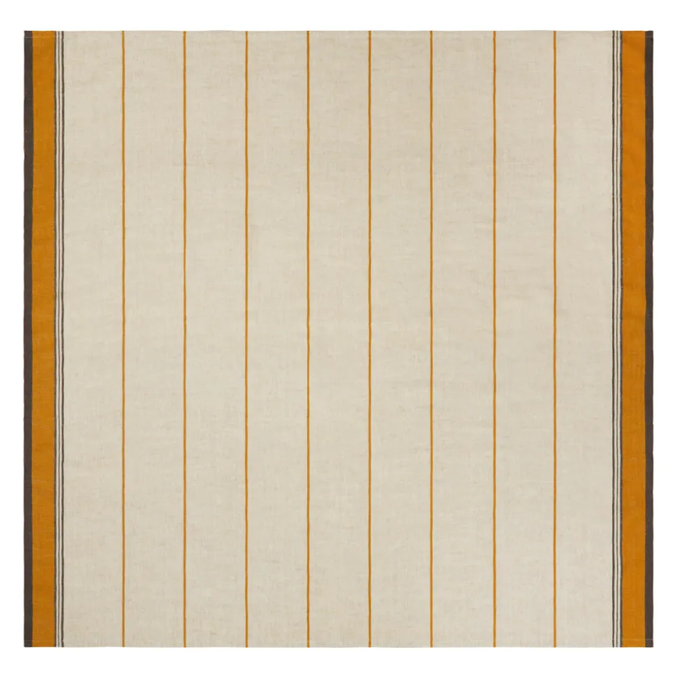 Inspired by stylistic trends from around the world, Caravan’s home accents embody an aesthetic that is both unique and unexpected, bringing everyday beauty and sophisticated simplicity to your home. Bring a touch of French bistro charm to your dining room or kitchen with this elegant Eze 60×90 Tablecloth in Ivory & Mustard. Crafted from a luxurious heavyweight linen and cotton blend, this tablecloth features a narrow stripe design in a natural color palette, perfect for creating a warm, French country-inspired look. Whether you are hosting a casual meal or a more formal gathering, it offers effortless sophistication and convenience for your kitchen or dining room.