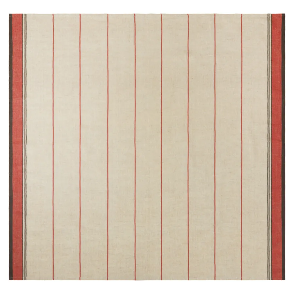 Inspired by stylistic trends from around the world, Caravan’s home accents embody an aesthetic that is both unique and unexpected, bringing everyday beauty and sophisticated simplicity to your home. Bring a touch of French bistro charm to your dining room or kitchen with this elegant Eze 60×90 Tablecloth in Ivory & Red. Crafted from a luxurious heavyweight linen and cotton blend, this tablecloth features a narrow stripe design in a natural color palette, perfect for creating a warm, French country-inspired look. Whether you are hosting a casual meal or a more formal gathering, it offers effortless sophistication and convenience for your kitchen or dining room.
