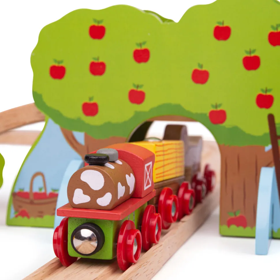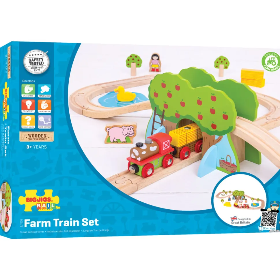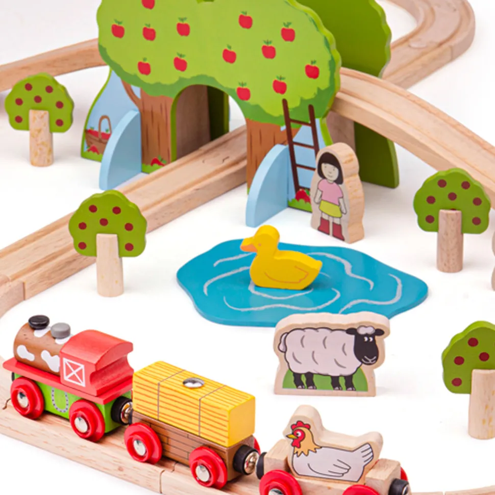 Quality has always been at the heart of Bigjigs Toys, a family business that began in 1985 with jigsaws crafted from a garden shed in Kent, England. Today the company boasts a wide range of toys and games that are not only safe, and made to last, but complement childhood development through fun, exploration and learning. Storytelling and creative play are never ending with the 44-piece Farm Train Set; little train drivers can chug the farm train through the apple orchards and help the farmer deliver hay bales before stopping for a rest by the duck pond. Additional accessories are available to expand this set.