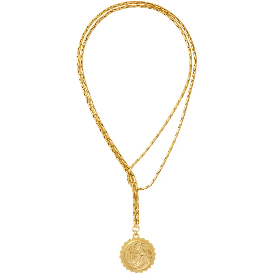 The mother-daughter duo behind Brinker + Eliza combine their experience in metalsmithing and fashion to create incredibly unique jewelry that feels custom-made. Employing pearls, shells, and earth’s most prized organic forms, these are pieces to be not just worn but treasured. The Fauna Necklace is made for everyday wear. Featuring a swirling floral motif, this piece is crafted in 24K antique gold. It can be worn as a long pendant or as a lariat.