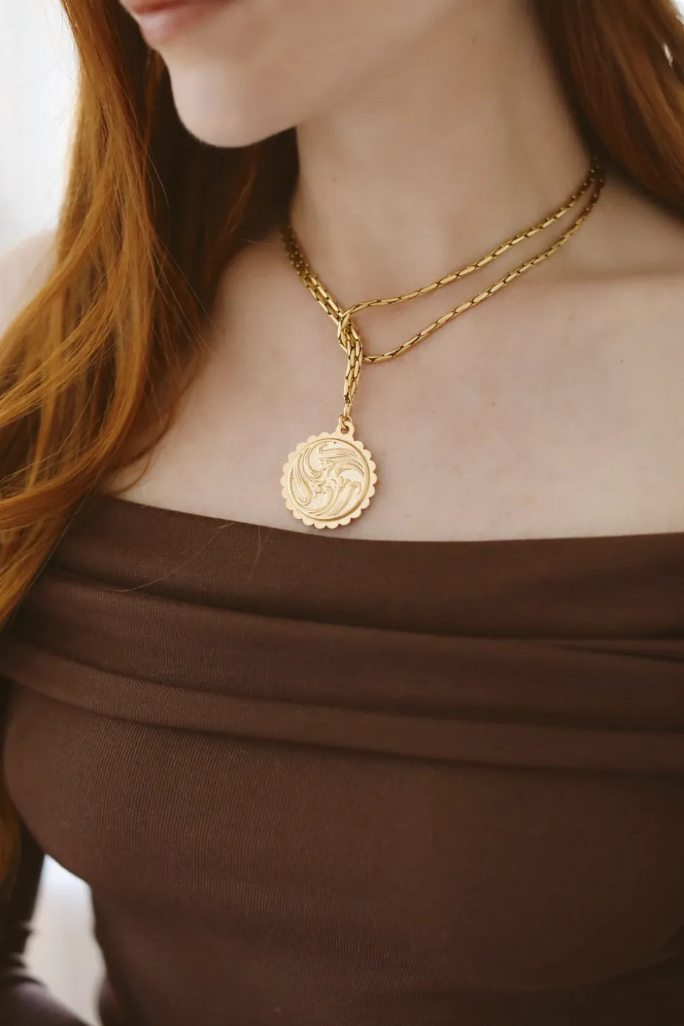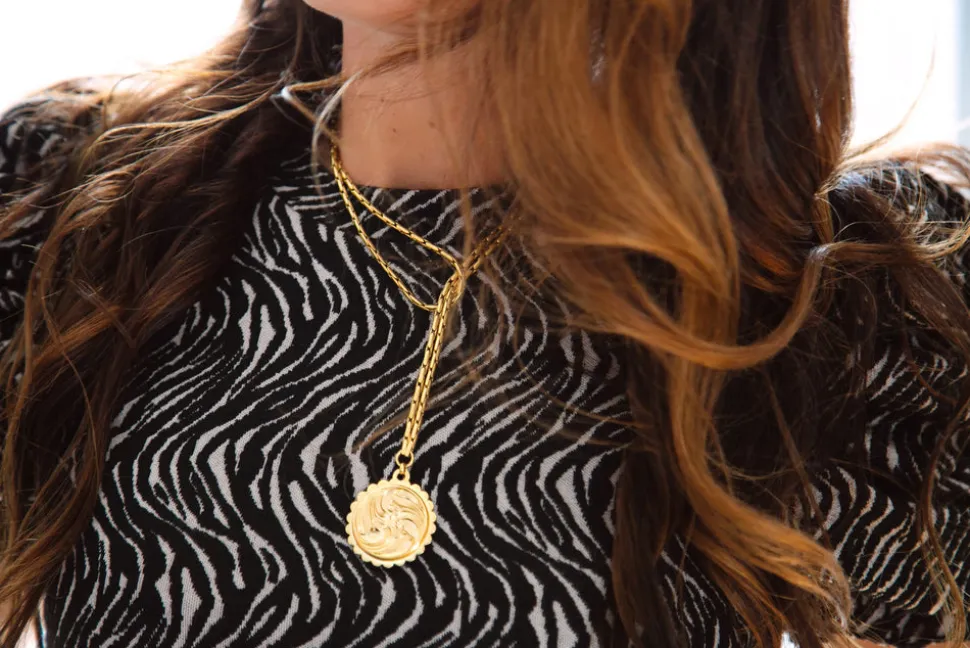 24K antique gold plated woven snake chain and medallion.