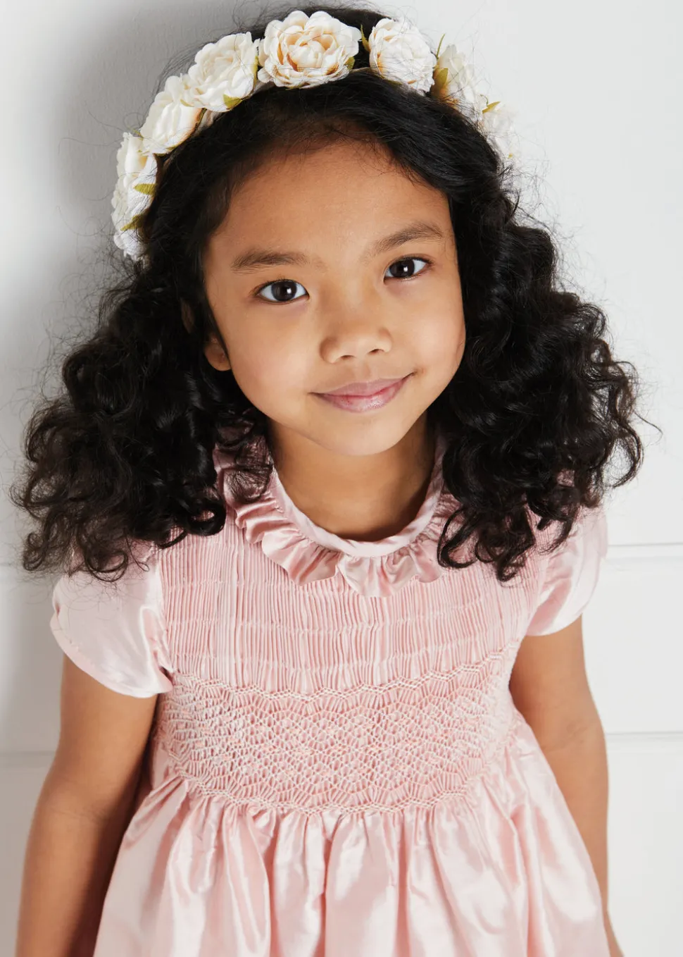 Renowned for exceptional craftsmanship and timeless design, Pepa London creates traditional childrenswear to be treasured and passed down. Each piece reflects the brand’s belief in dressing children like children, combining British style with refined details, comfort, and enduring elegance. The Faux Flower Pearl Detail Crown with Ivory Flower is a romantic finishing touch, featuring delicate faux blooms and pearl accents woven along a ribbon band. A wide silk bow ties at the back, making it a graceful hair accessory for weddings and special celebrations.
