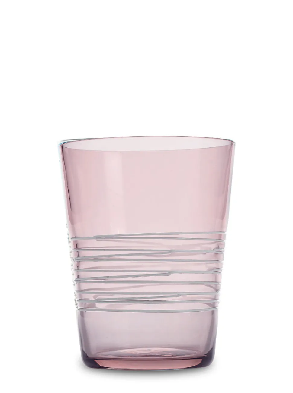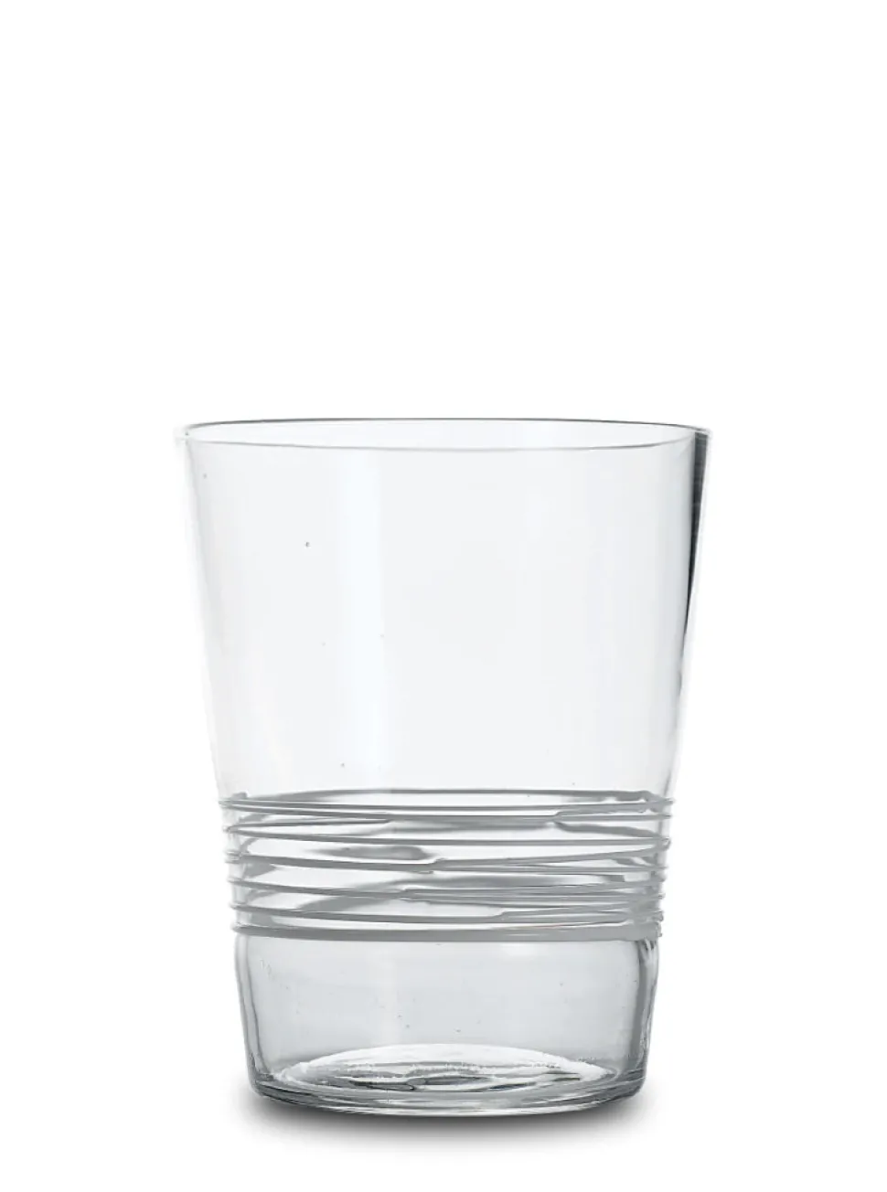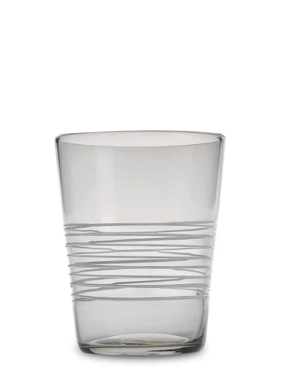 Zafferano lamps and glassware harness centuries of Murano craftsmanship, and hone it through the inimitable vision of Federico de Majo, giving these delicate, finely made pieces modern touches and endlessly stylish flair. Crafted in transparent glass and that features an ornate abstract pattern of string-like detail wrapping around the center of each glass, providing both an attractive texture and a helpful grip.