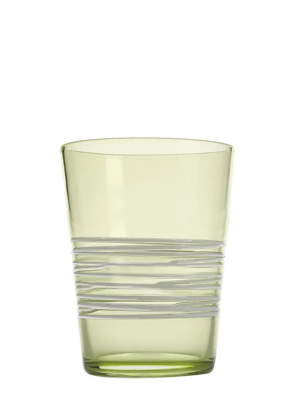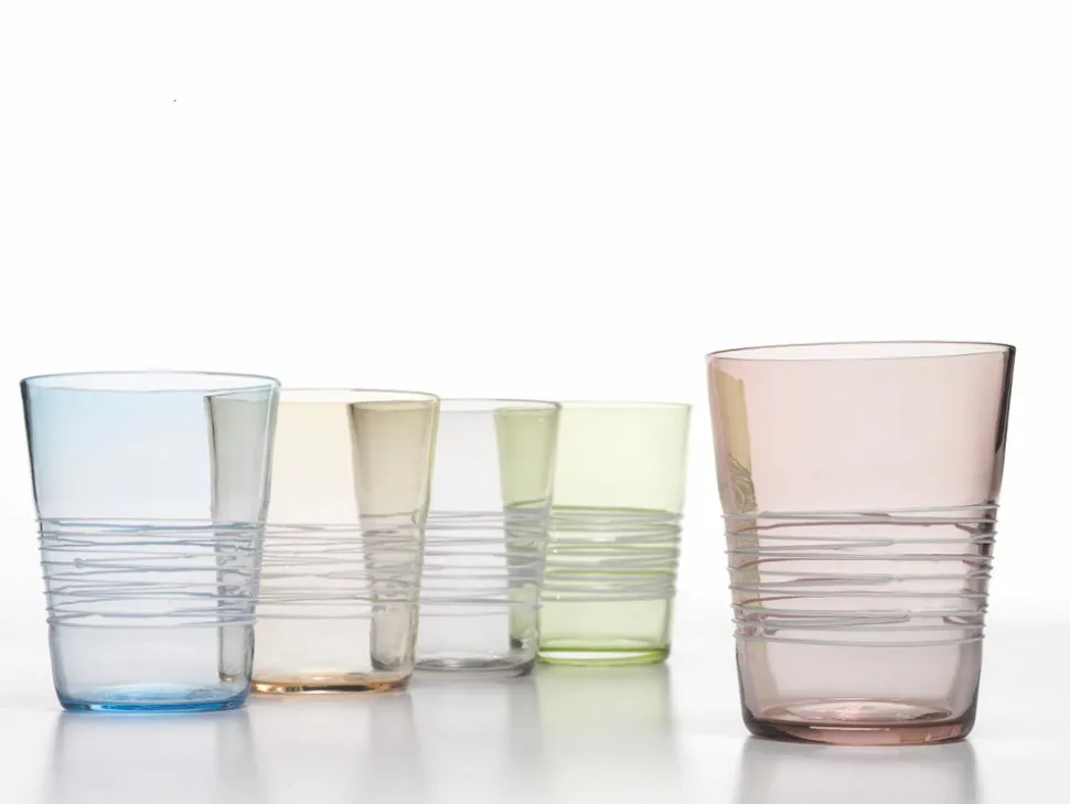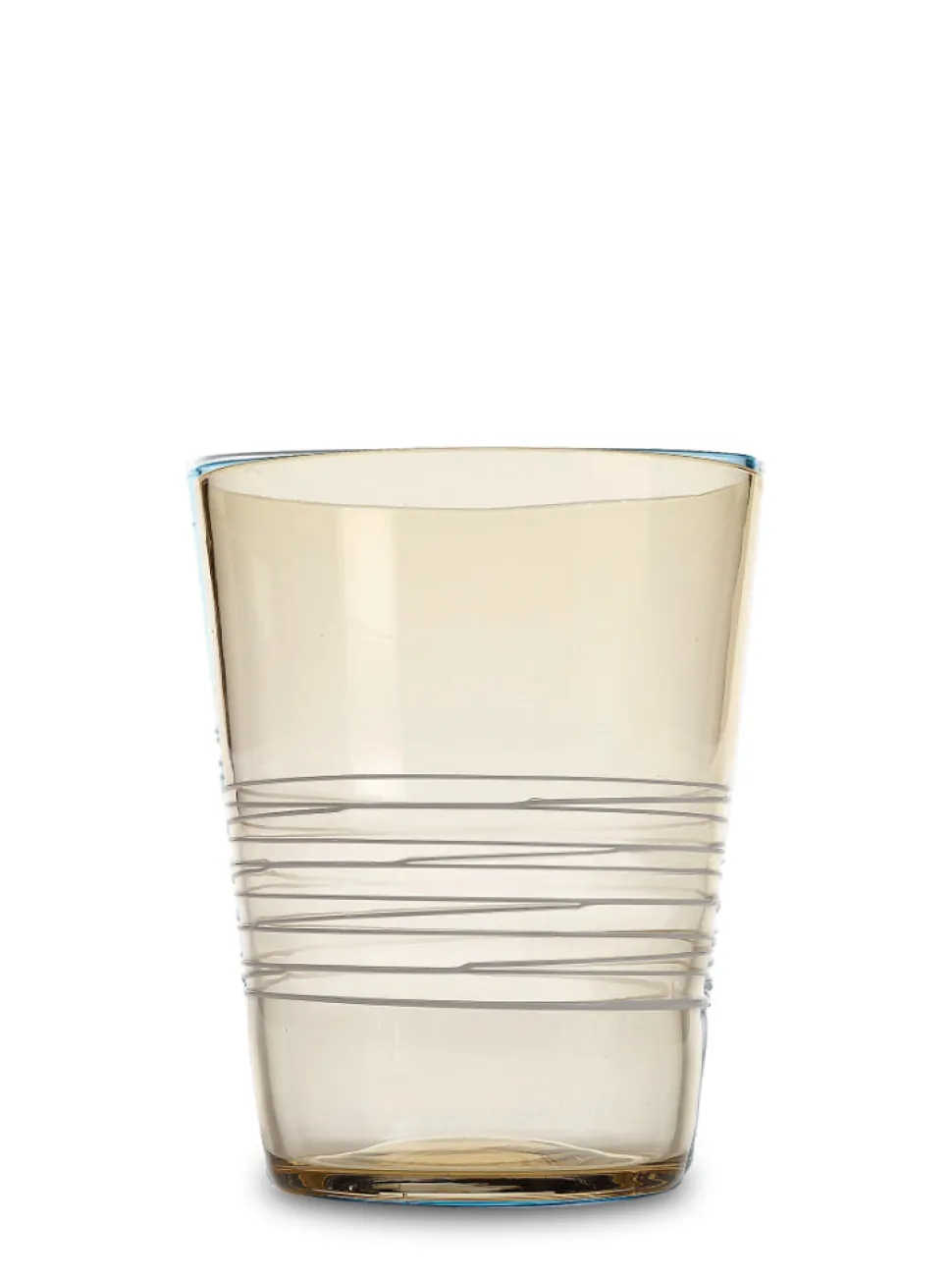 Zafferano lamps and glassware harness centuries of Murano craftsmanship, and hone it through the inimitable vision of Federico de Majo, giving these delicate, finely made pieces modern touches and endlessly stylish flair. Crafted in transparent glass and that features an ornate abstract pattern of string-like detail wrapping around the center of each glass, providing both an attractive texture and a helpful grip.