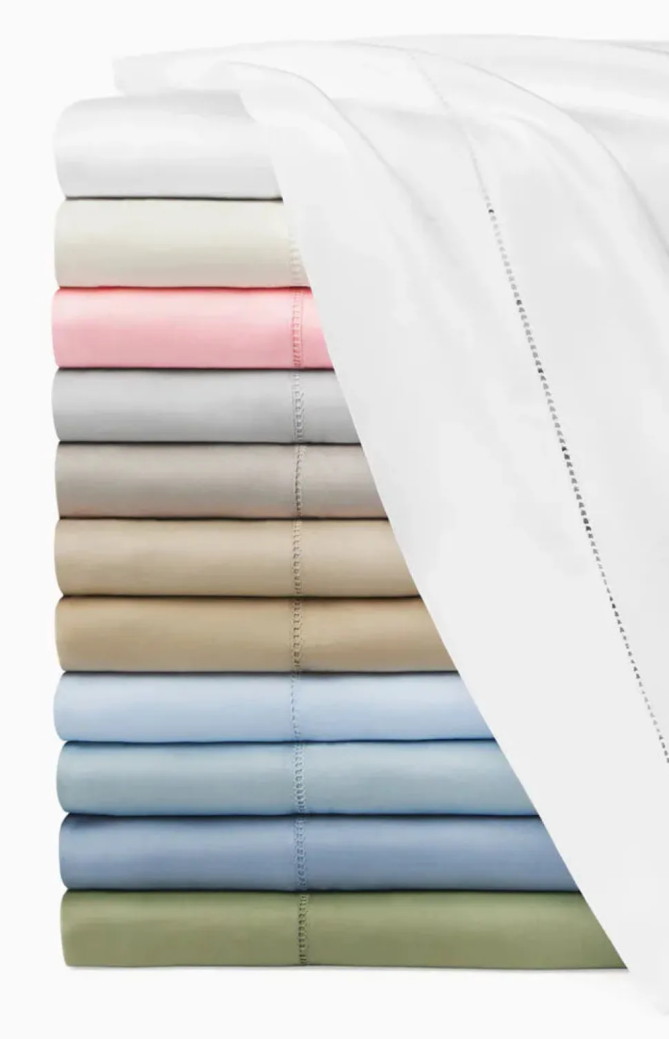 100% long-staple cotton sateen. Color: Carnation. Silky-smooth feel with a subtle sheen.