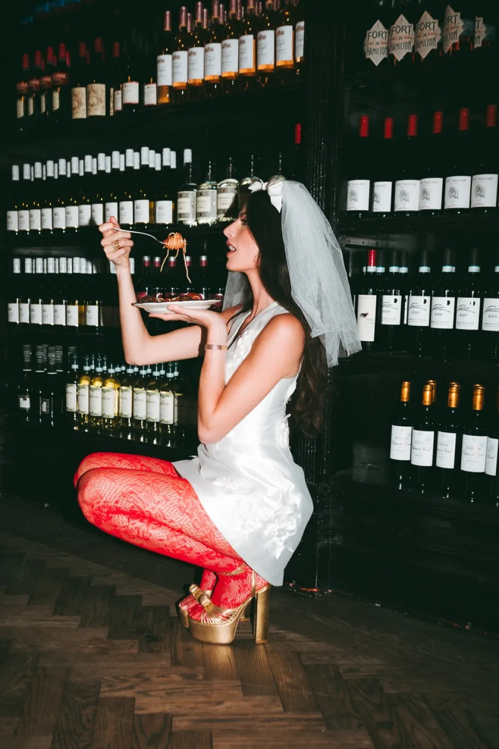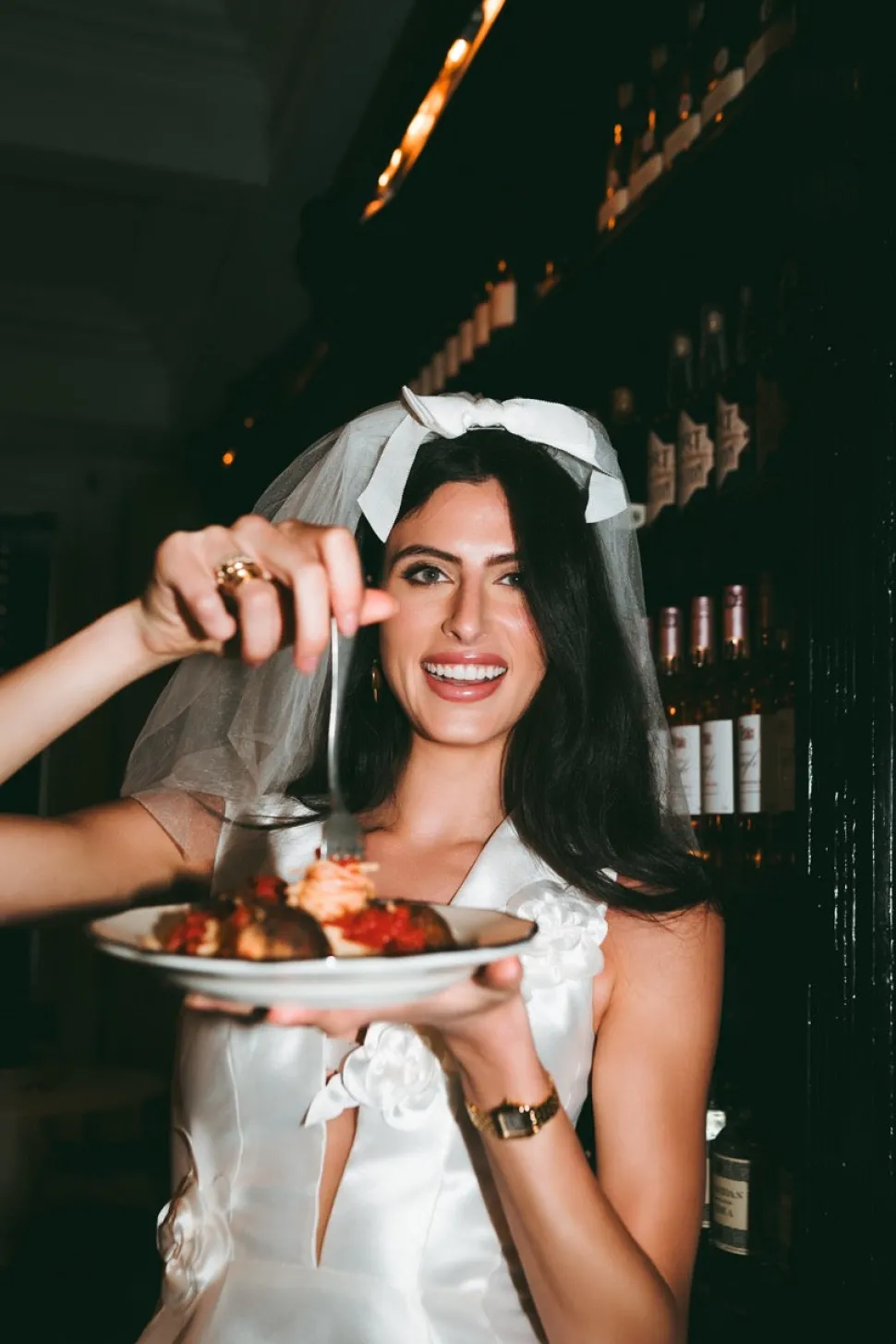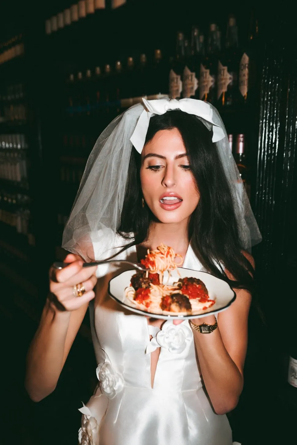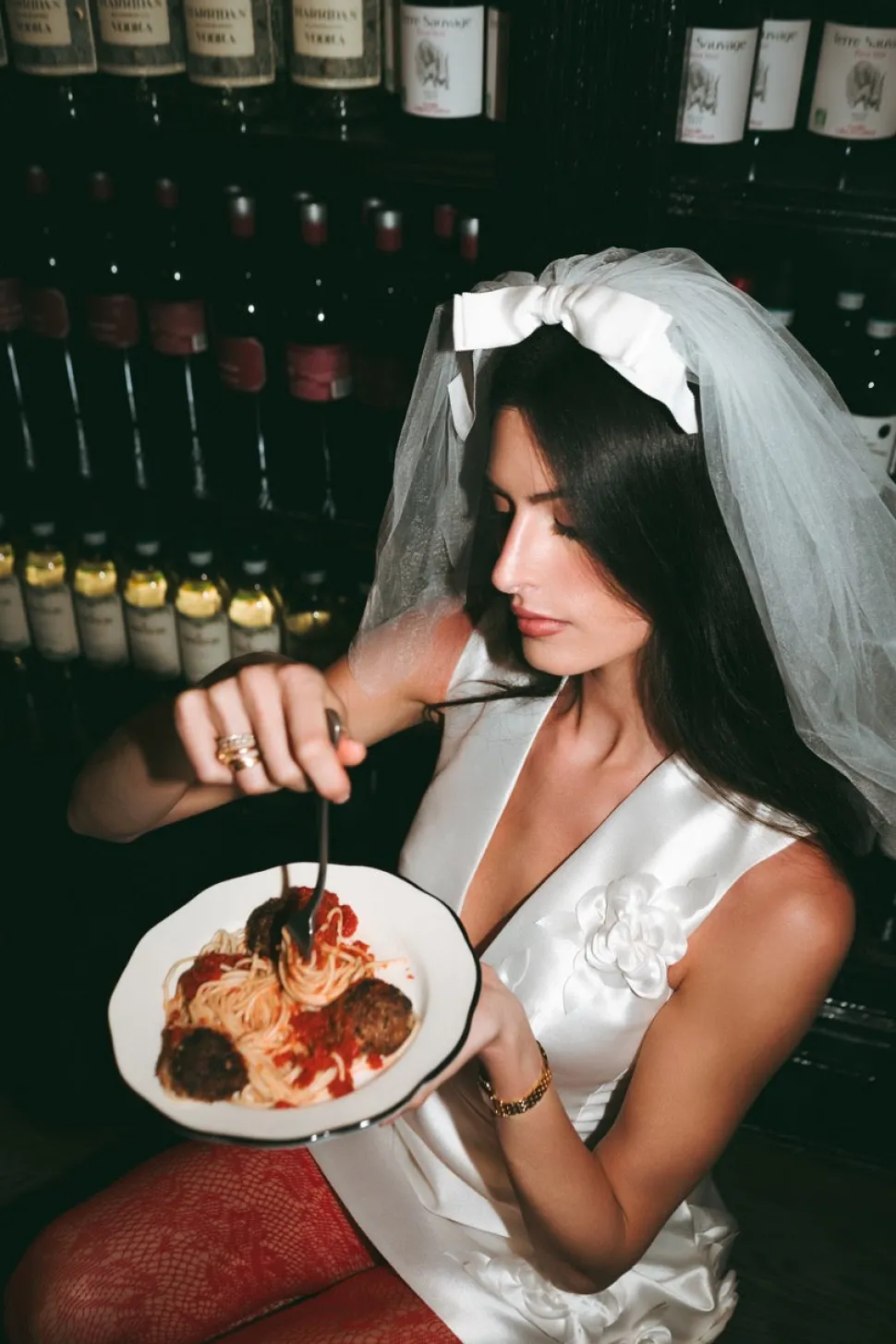 The magic in By Watters—a family-run business of designers, seamstresses, and pattern makers—is understanding how the wants and needs of brides evolve. Embracing drama, versatility, and individuality, By Watters makes dresses for the brides and bridesmaids you want to be. Mikado flowers adorn the Fiore Dress, which is accentuated by a deep V neckline.