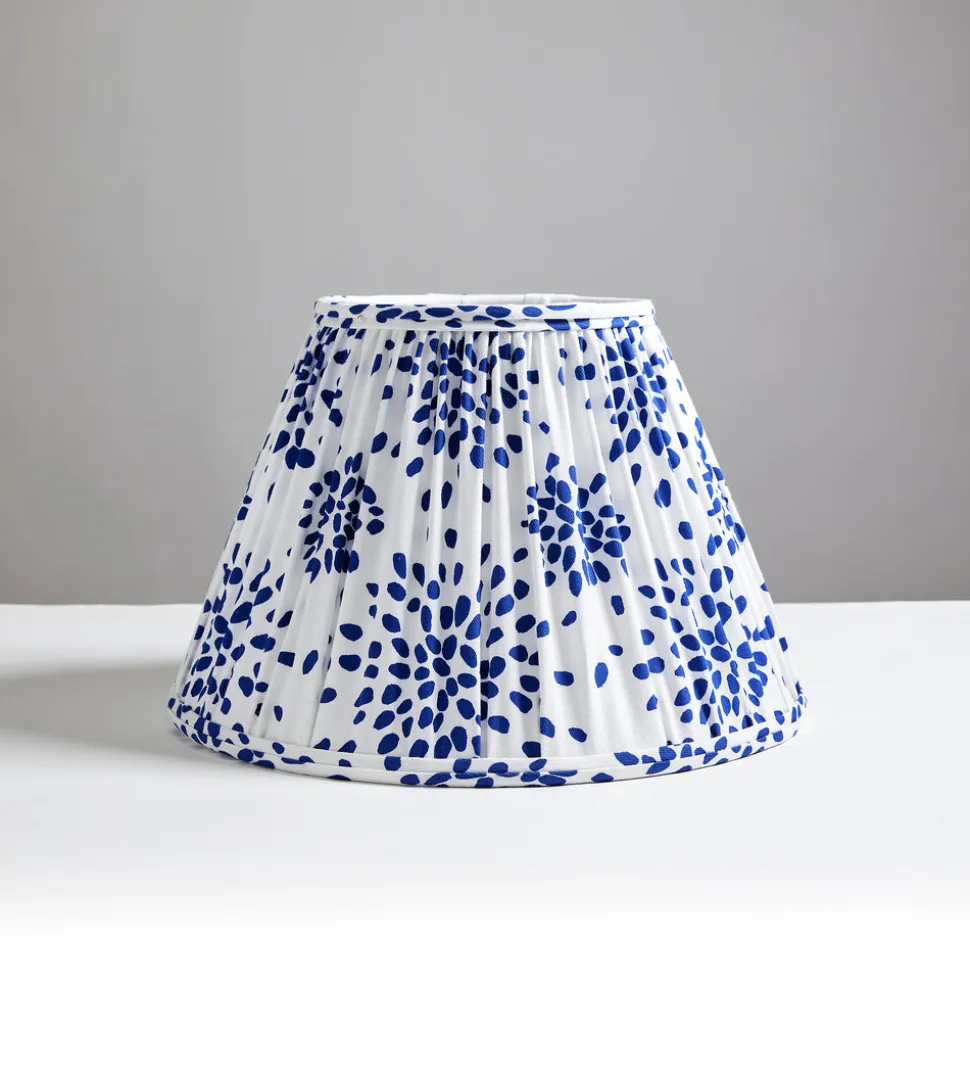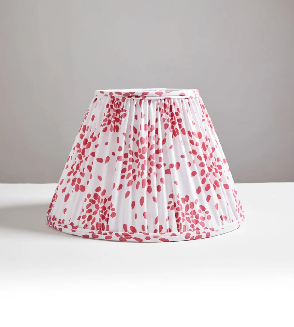A destination for design connoisseurs since 1929, the House of Scalamandré is known for its commitment to the art and craftsmanship of its luxury fabric, wallcoverings, and furniture. Designs like the prancing zebras are recognized the world over for the integrity and quality of a brand in harmony with heritage and innovation. A beloved pattern from Hinton decorates the Fireworks Drum Shade, an energetic, allover pattern featuring graphic bursts of color. Each shade is handcrafted by stretching and sewing the material over a wire frame; utterly fresh and elegant.